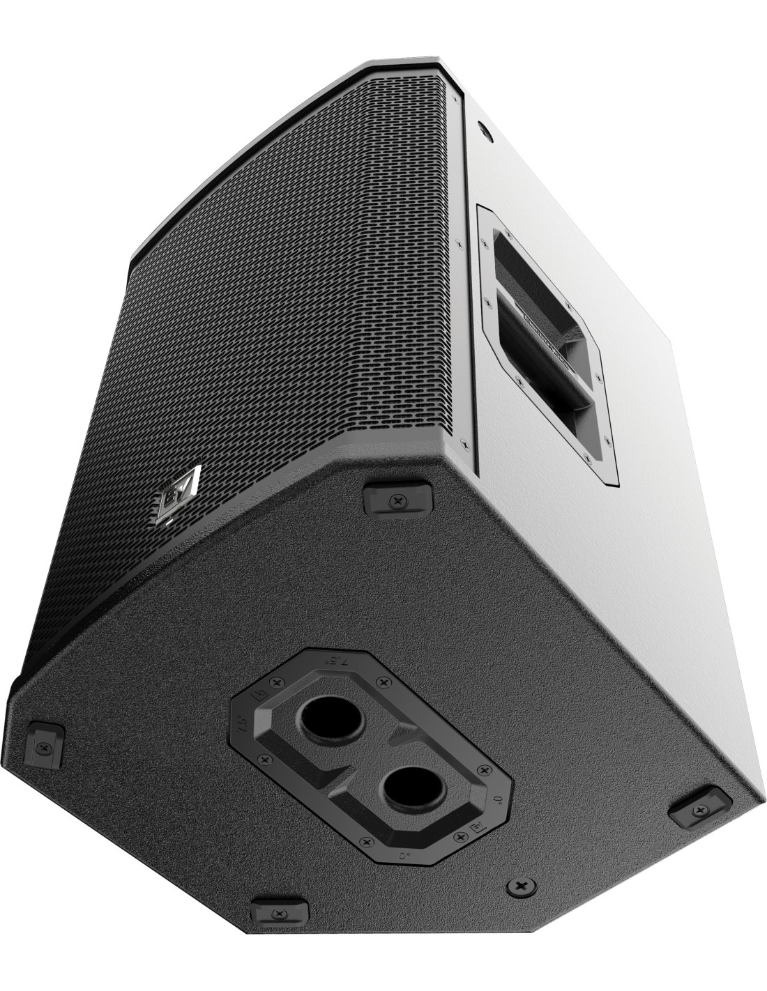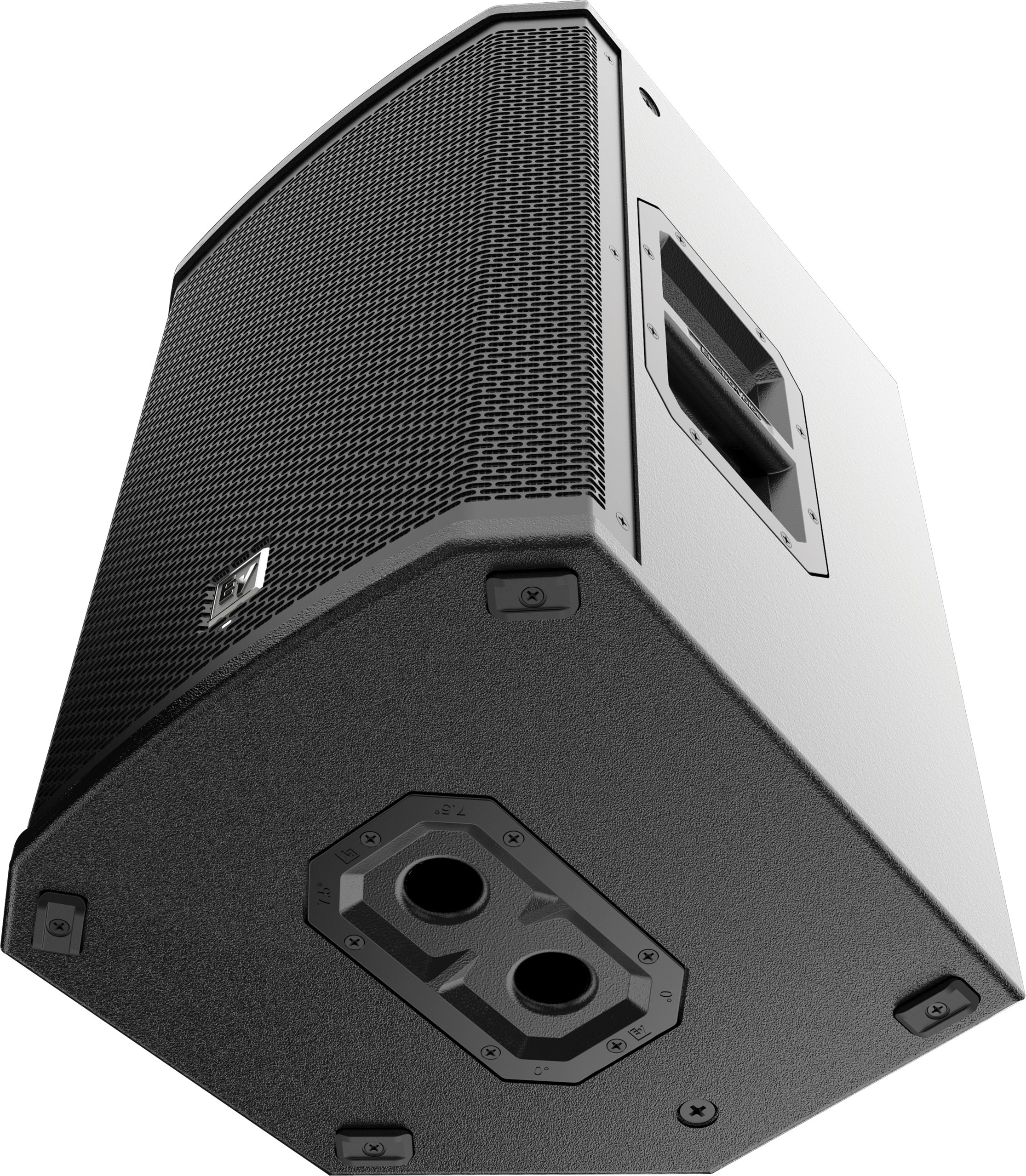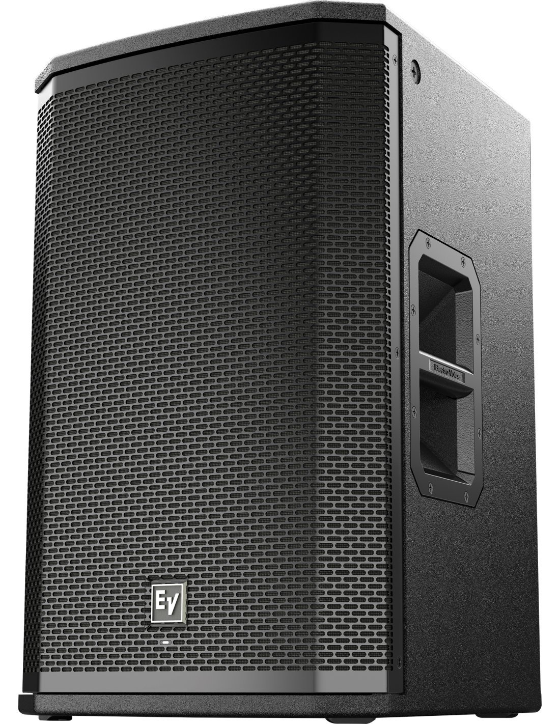 Full range self-powered 2-way system. Asymmetrically shaped 18 mm birch plywood case, covered with EVCoat, with black finish. Includes 2 carrying handles, tripod stand with 2 positions (0° and 7.5°) and 8 M10 anchor points. LF: 1 x 12' cone speaker (SMX2120). HF: 1 x 1.25' titanium diaphragm driver (DH3-B). It includes a 2,000 W power module, DSP with LCD display and associated encoder, FIR-Drive processing, EQ presets for application mode and position, 3x PEQ, 0 - 343 m delay adjustable in 0.25 m intervals, adjustable Hi-Pass filter for combination with Sub. 2 inputs with XLR-Jack¼ 'Combo connectors, with independent level adjustment, 1 parallel output with the mix of inputs (XLR). -10dB response: 43Hz - 20kHz. Maximum SPL: 135 dB. Angle of coverage: H 90° x V 60°. Dimensions (HxWxD): 613 x 381 x 400 mm. Weight: 23.6 kg