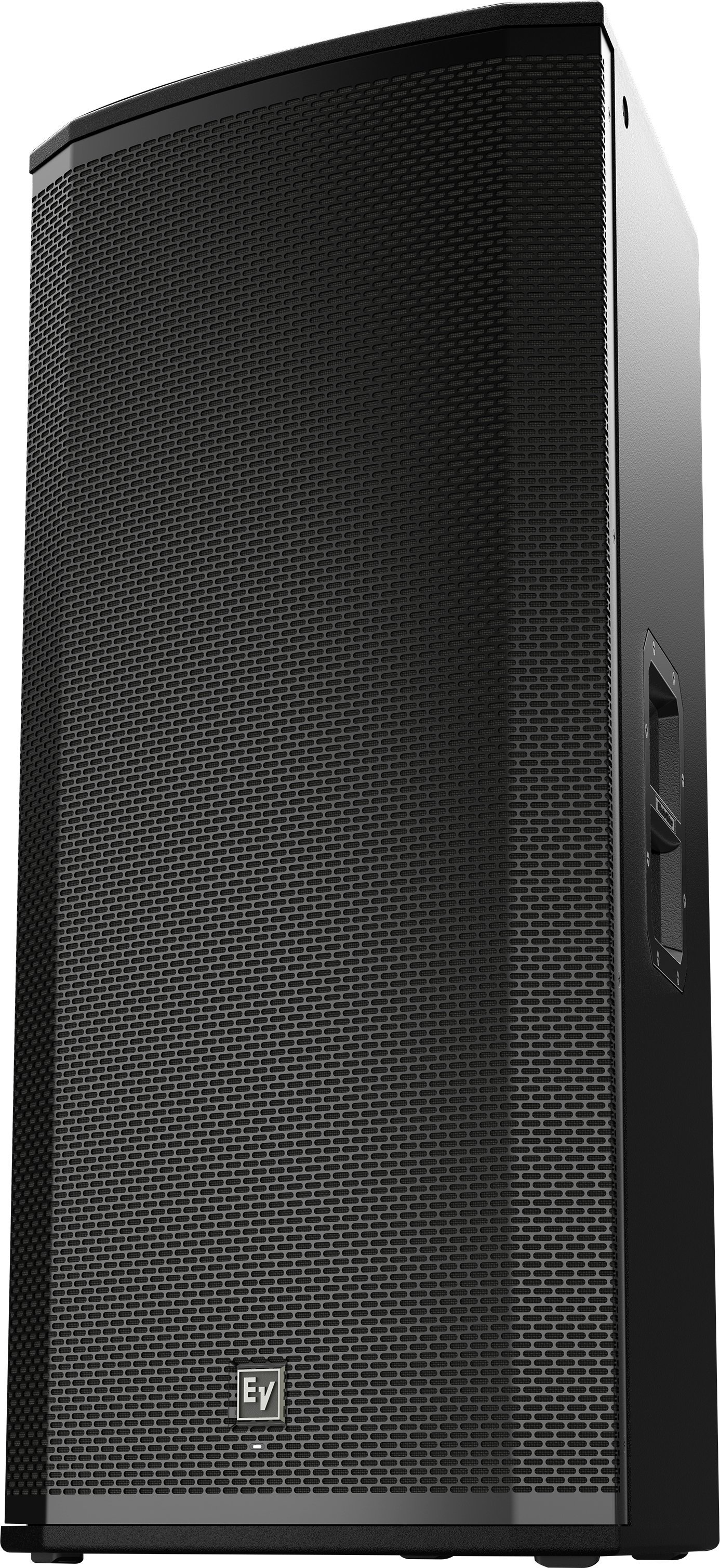 Full range self-powered 3-way system. Asymmetrically shaped furniture in 18 mm birch plywood, covered with EVCoat, with black finish. It includes 2 carrying handles, a combined tripod/rod attachment with M20 thread and 8 M10 anchor points. LF: 1 x 15' cone speaker (SMX2151). MF: 1 x 6.5' cone speaker (EVS-6C). HF: 1 x 1.25' titanium diaphragm driver (DH3-B). It includes a 2,000 W power module, DSP with LCD display and associated encoder, FIR-Drive processing, EQ presets for application mode and position, 3x PEQ, 0 - 343 m delay adjustable in 0.25 m intervals, adjustable Hi-Pass filter for combination with Sub. 2 inputs with XLR-Jack¼ 'Combo connectors, with independent level adjustment, 1 parallel output with the mix of inputs (XLR). -10dB response: 48Hz - 20kHz. Maximum SPL: 136 dB. Angle of coverage: H 60° x V 40°. Dimensions (HxWxD): 1023 x 469 x 447 mm. Weight: 38.2 kg