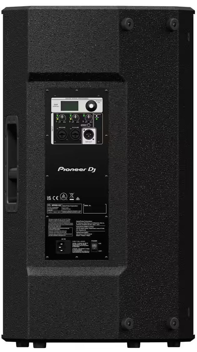 PIONEER DJ XPRS 152 is a 2-way biamplified active DJ speaker with 15" speaker and 2000W Peak Class D power amplifier. Technical features include 15" Woofer with 3" voice coil, 1" output compression driver with 1.75" voice coil, integrated DSP with 4 modes: Live, Music, Speech and Studio Monitoring to meet the needs of different listening environments, 16 additional customizable DSP user modes, Oled navigation display with multifunction push encoder, Mic/Line input via XLR/TRS combo connector, Hi-Z/Line input via XLR/TRS combo, Mix output via XLR, 110 V/240 V Switching power supply, 133Db of maximum SPL