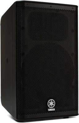 YAMAHA DXR10 MKII. Bi-amplified active speaker with 1100W of class D power and integrated DSP. Technical features include 10" Woofer with ferrite magnet, 1.75" compression Tweeter, 3 channels with XLR input, level control, mic/line switch and Thru XLR output on channel 1, TRS L/R inputs with level control on channel 2, RCA L/R inputs with level control on channel 3, integrated DSP with equalization options via switch and mode selector (FOH, Monitor), parallel output via XLR with Ch1 Thru or Ch1+Ch2 mix selector