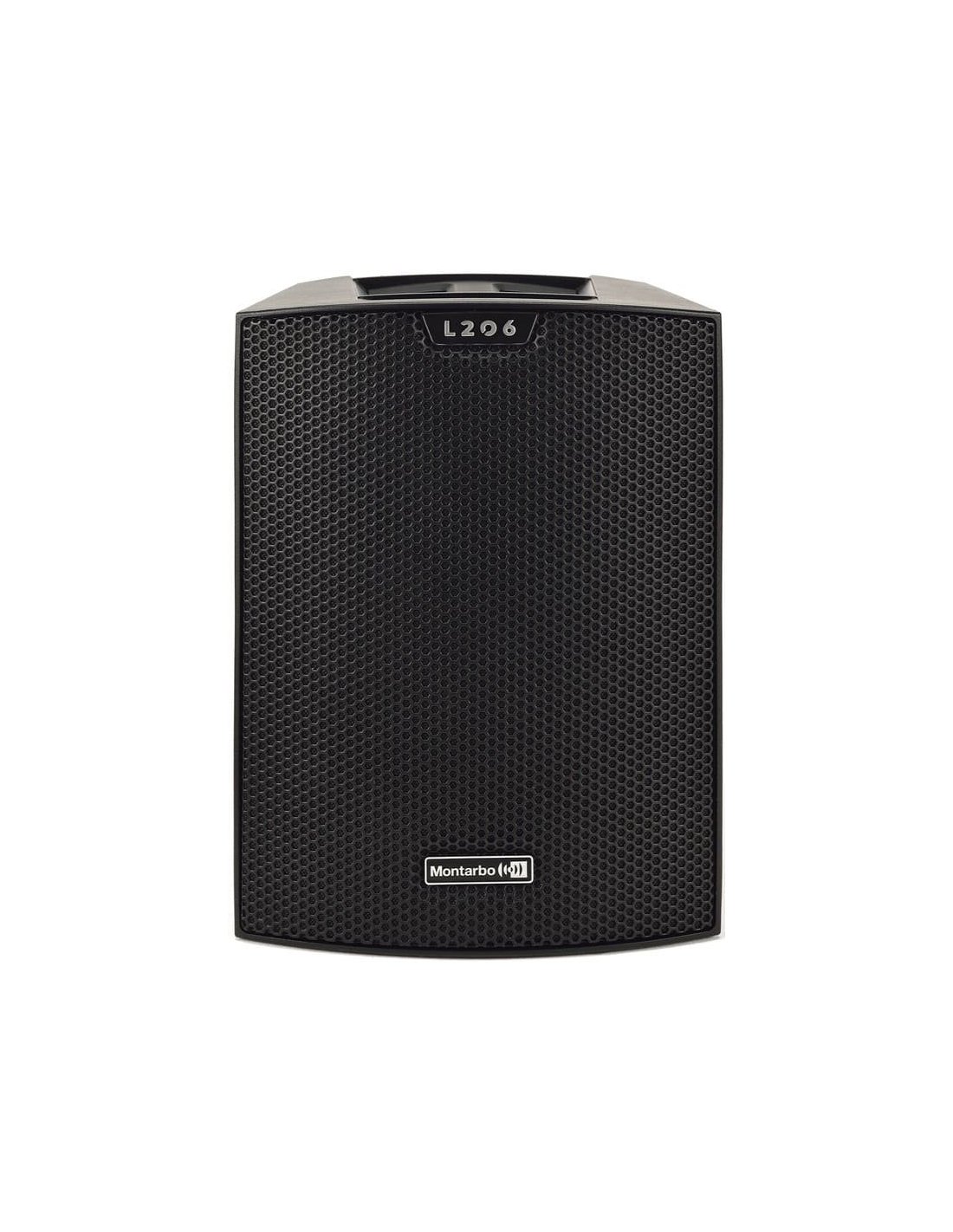 MOUNT ARBO L206. Portable battery-powered Bluetooth speaker with 150W RMS power. Technical features include integrated 3-channel mixer with linear phase FIR filters, 2 XLR/TRS mic/line combo inputs with 2-band eq and reverb, CH3 with aux-in input via Jack 3.5, Bluetooth implementation, line out via TRS and Battery level section with LED battery status indicator. The speaker is equipped with 6.5" speakers and 5 2.5" HF drivers