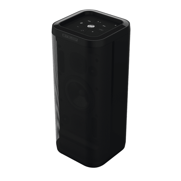 RELOOP GROOVE BLASTER. 3-way Bluetooth speaker with 100W of class D power and Smart Link technology. Technical features include integrated Bluetooth 4.0 interface, 2 3" midrange speakers, 2 1" tweeters, 1 6" Woofer, Smart Link function to connect 2 devices in NFC wireless mode, built-in rechargeable lithium-ion battery for 10 hours of battery life, Touch control panel with management controls. Equipped with a removable carrying handle