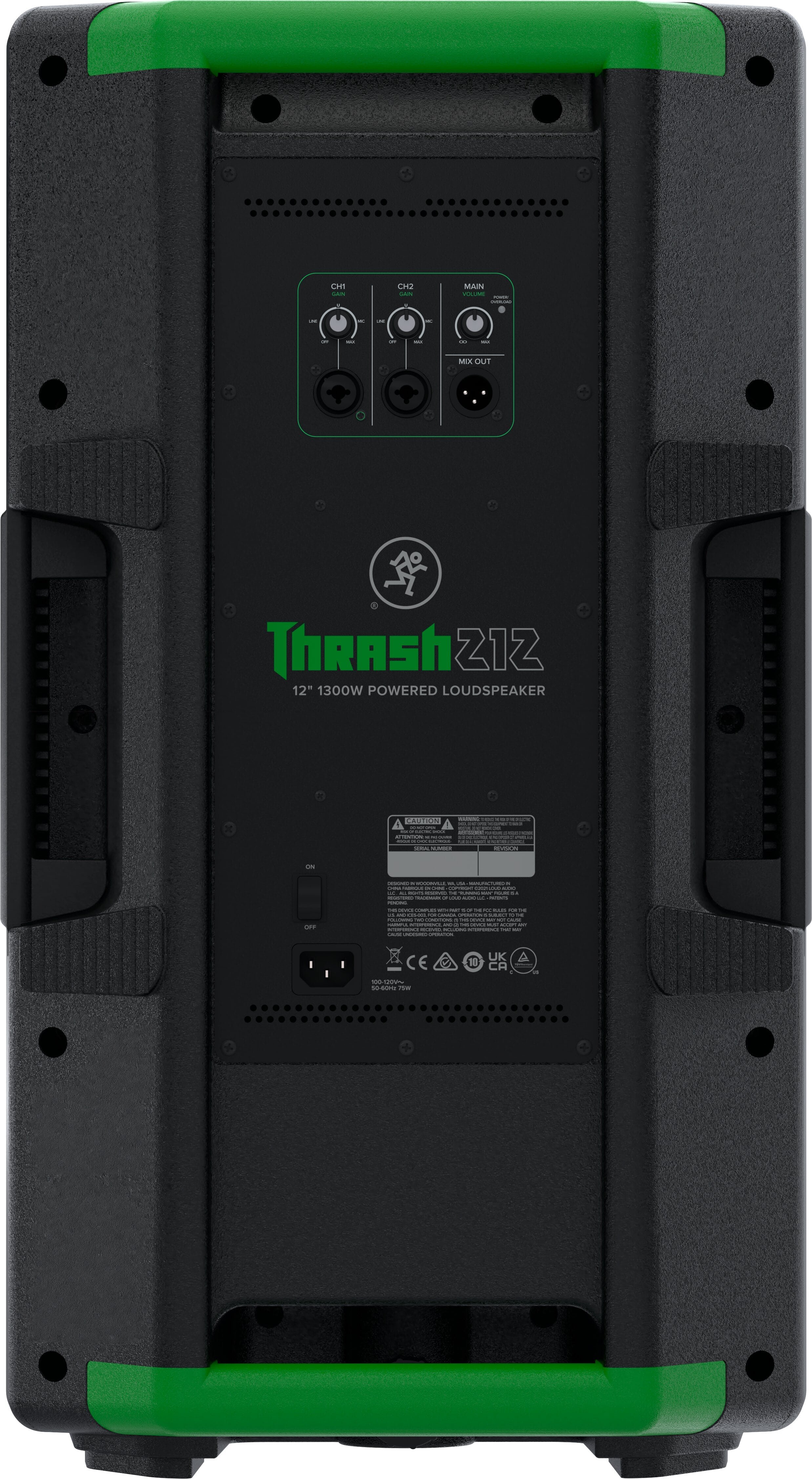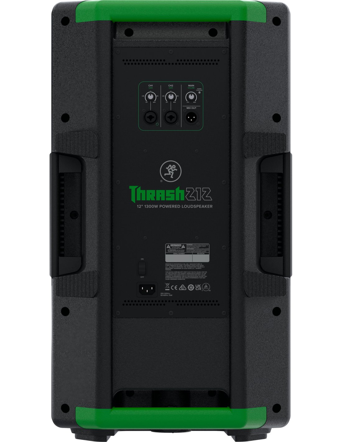 MACKIE THRASH 212 is an active speaker with 1300W of class D power. Technical features include 12" woofer, 1" titanium tweeter, 2 input channels via XLR/TRS combo, Mix output via XLR.