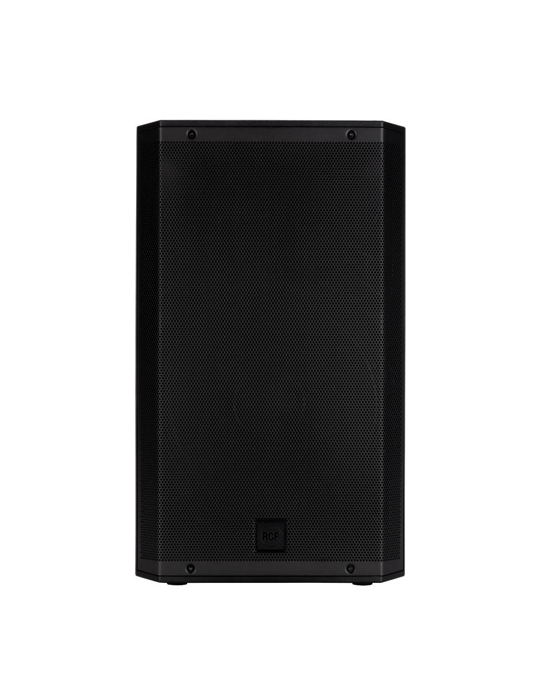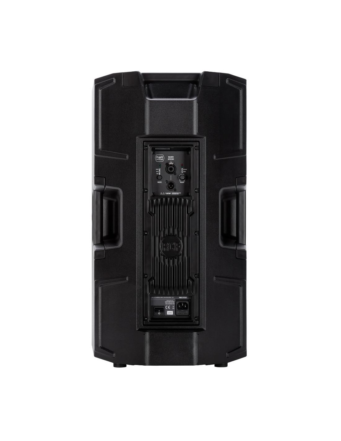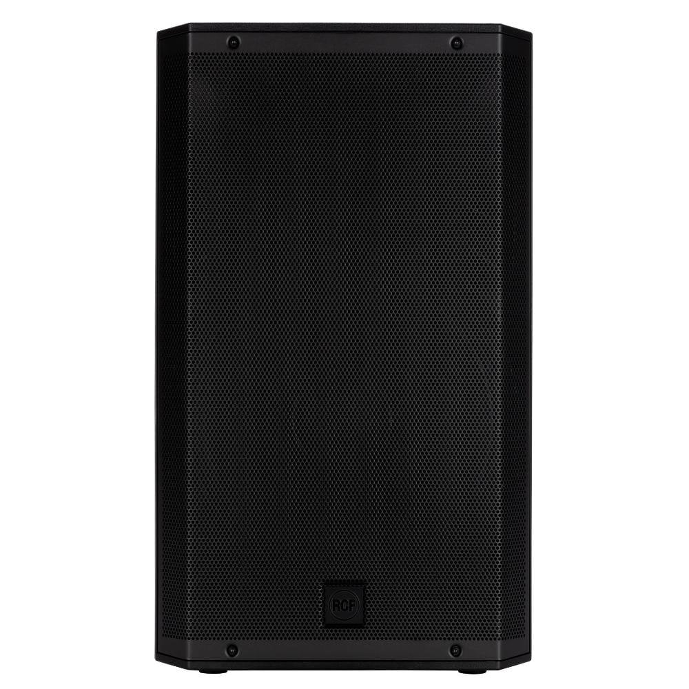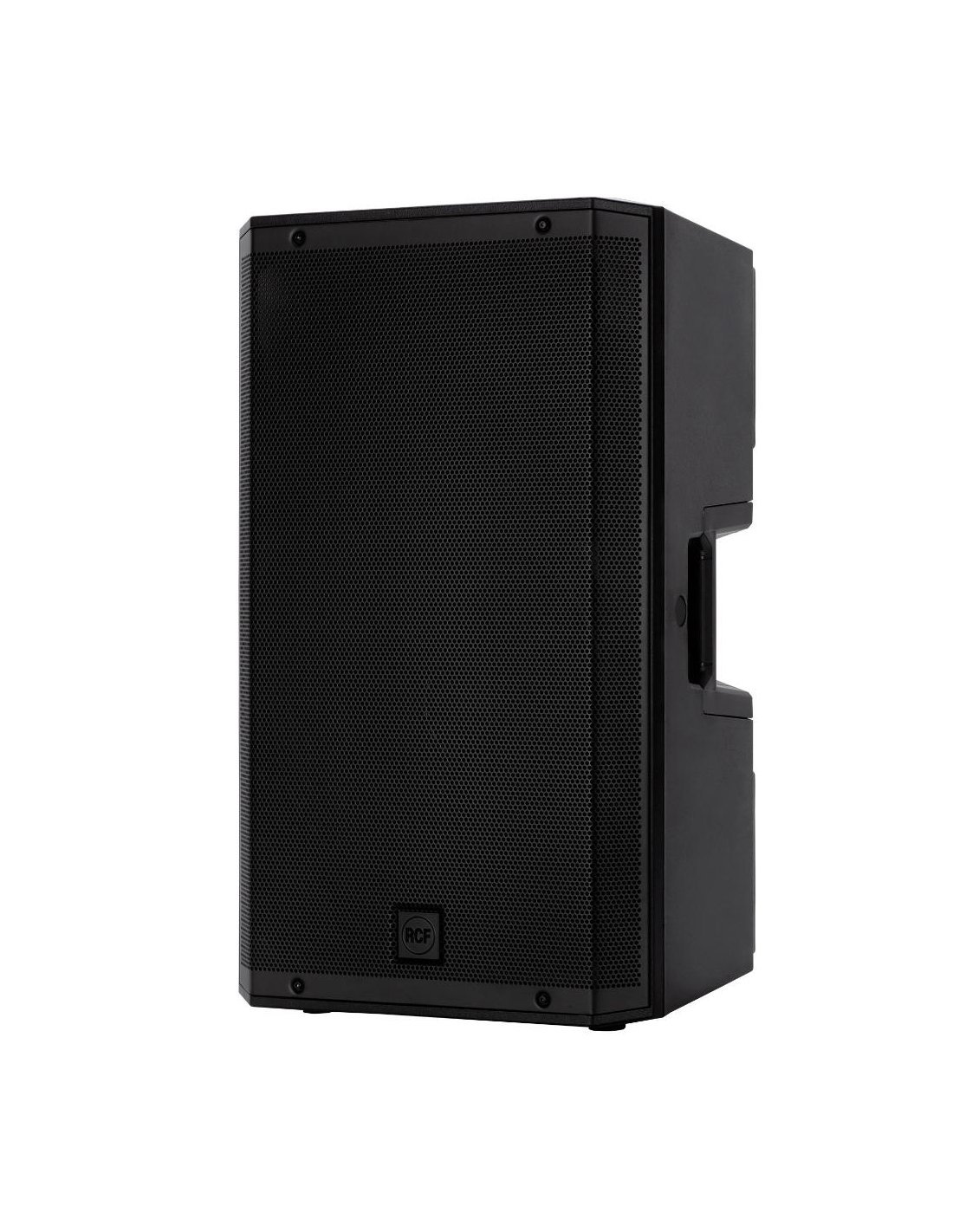 RCF ART 915-A. Active speaker with digital amplification and 2100W of class D power. Technical features include 15" speaker, 1" dome Polyimide-Kapton tweeter, integrated DSP with 3 equalization presets (Linear, Boost, Stage) selectable by a dedicated button, volume control, balanced input via XLR/TRS combo, integrated limiter, link output via