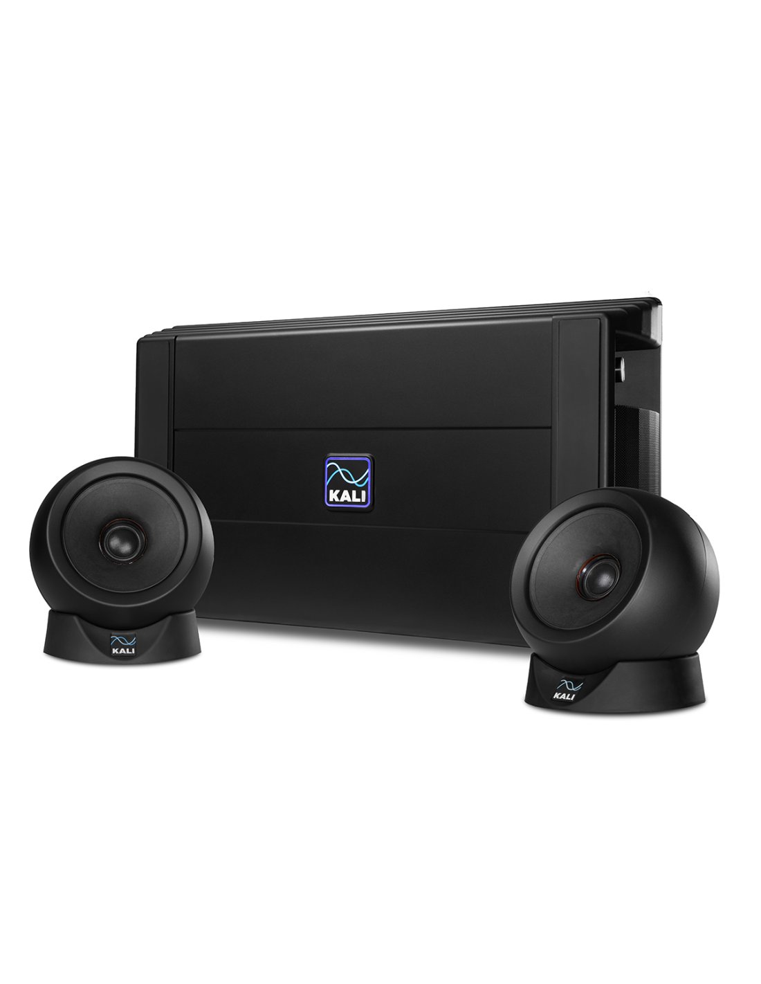 KALI AUDIO IN UNF. Class D amplified ultra nearfield monitor system. Technical features include Subwoofer with 2 x 4.5” 200W high-excursion speakers, 2 x 4” Midrange satellites with 60W of total power with 1” fabric dome Tweeter, 2 bi-amplified input channels, LF/MidRange Crossover: 280Hz, Midrange/HF Crossover: 2800Hz, frequency response (-10dB): 39Hz/25kHz, frequency range (±3dB): 47Hz/21kHz, max SPL: 103dB, 24bit/48kHz conversion. It has Stereo inputs: 3.5mm TRS Jack, Optical