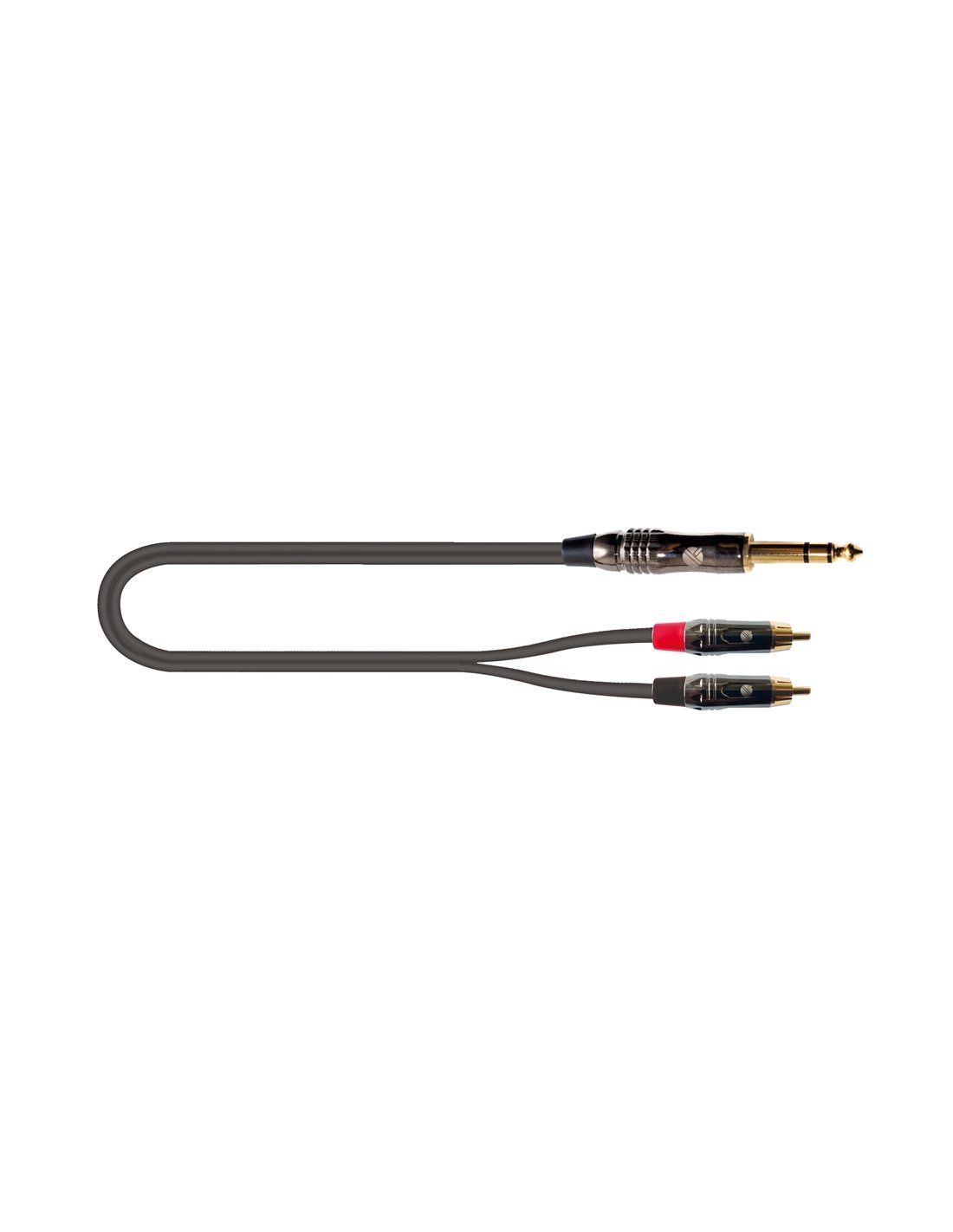 Connectors: 6.3 TRS Stereo Jack (G/20) <-> 2 x RCA Plug (G/255 and G/256) Color: black Length: 2