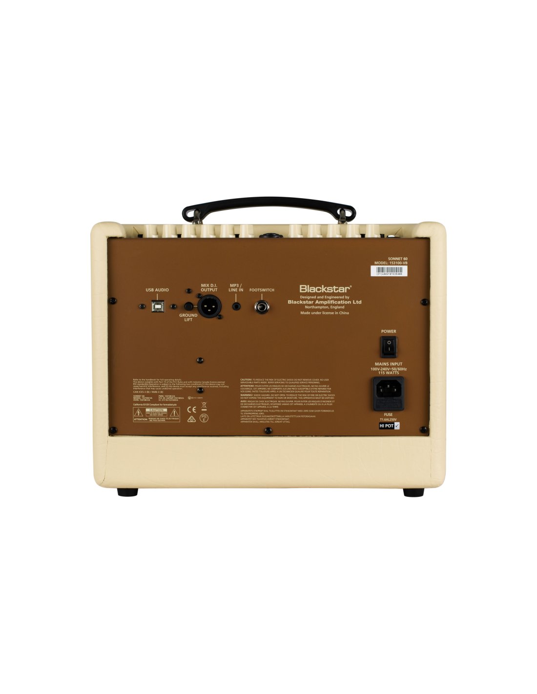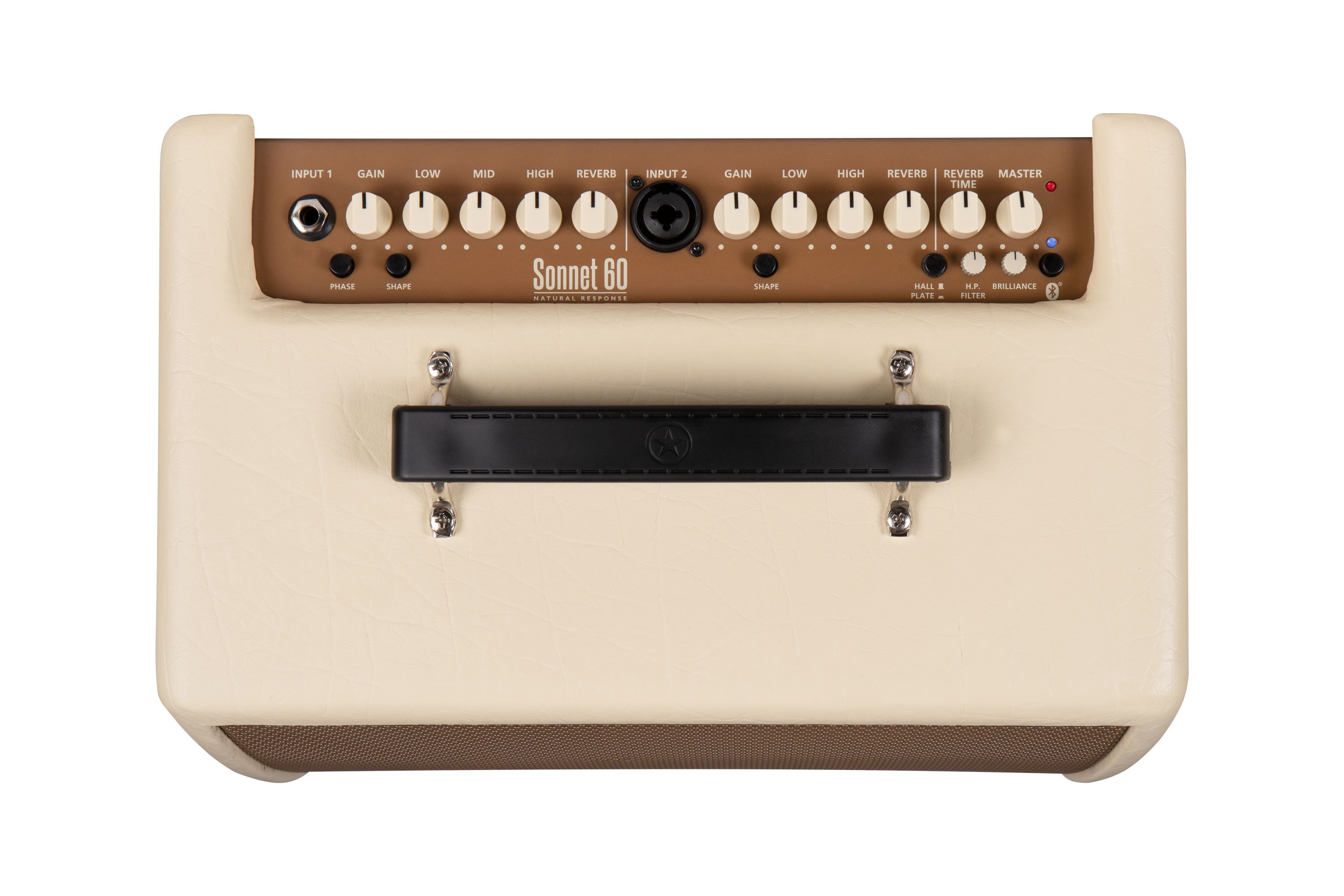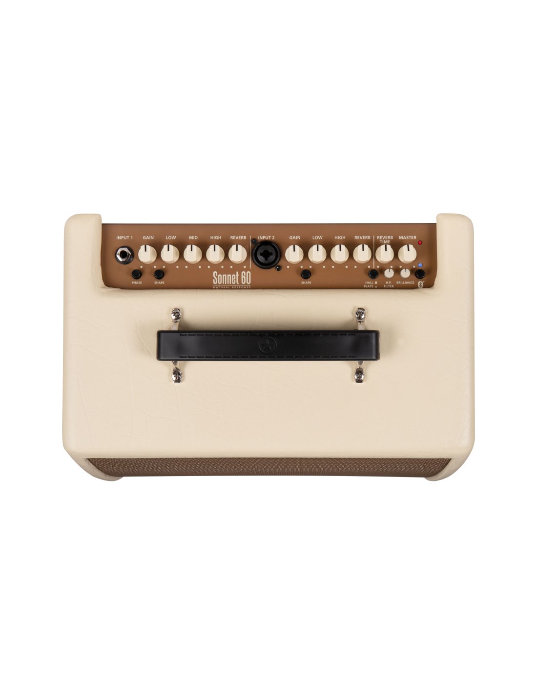 Sonnet 60 Blonde is the ideal pick-up and go-go combo. This light and compact cream-finish amplifier with a power of 60W (1x6.5” +tweeter) is perfect for your acoustic concerts. With microphone and instrument inputs equipped with independent EQ and Reverb, studio-quality effects: Hall and Plate, High Pass Filter, Brilliance Control, USB audio out, XLR DI mix output, MP3/Line in, Bluetooth audio, footswitch input for mute and effect control, and tiltable rear stand