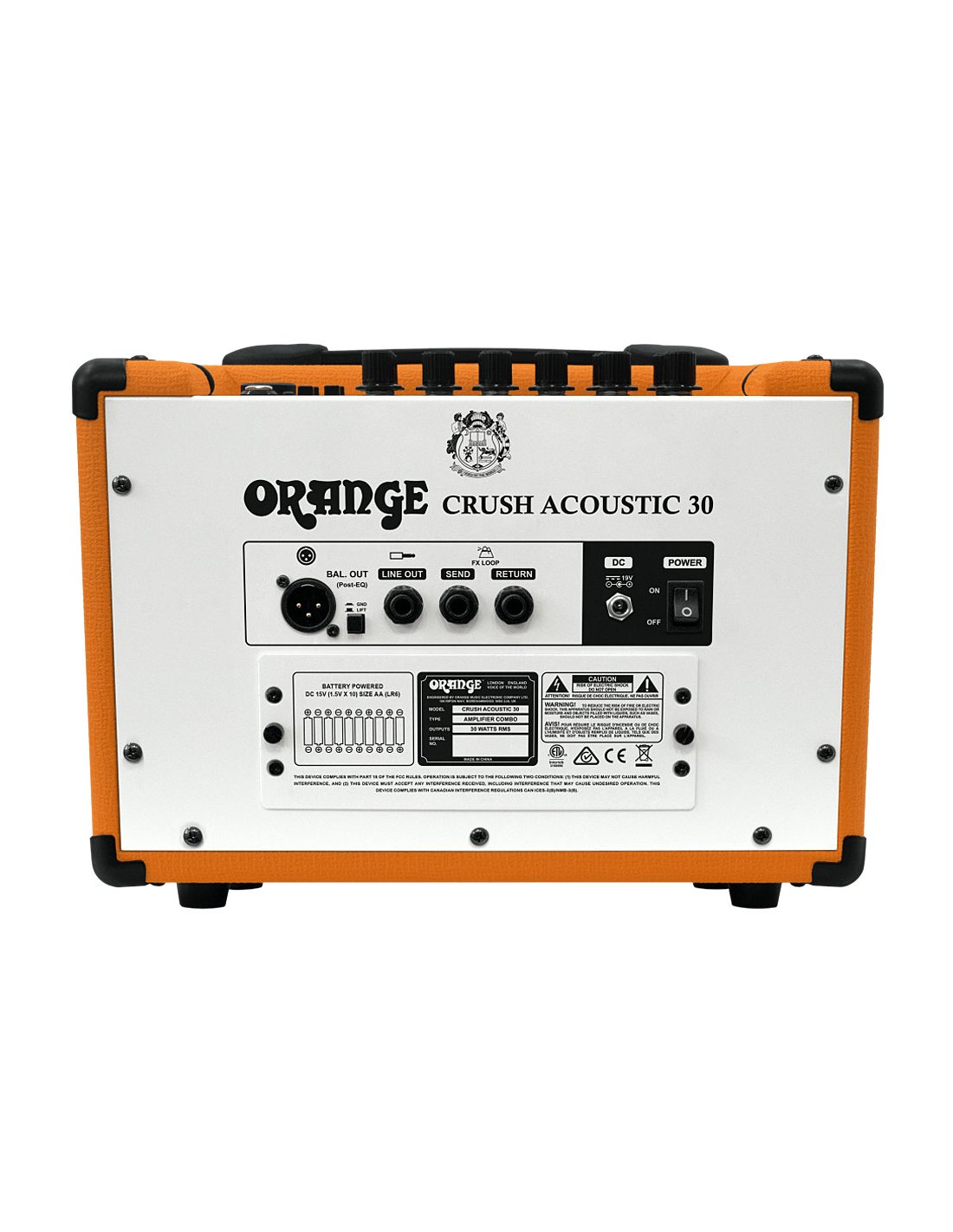 Combo amplifier for acoustic guitar. Angled design for better cleaning and clarity of sound. Power: 30W. Speaker: 1x8” “Voice of the World Acoustic”. 2 Channels: Instrument (Jack) and Microphone (Jack-XLR combo). Effects: Reverb and Chorus. 3-band equalizer. Notch filter to avoid feedback (re-powered). Loop effects. Blend option (mix). Auxiliary input for 3.5 mm mini jack. Jack output not balanced. XLR balanced output, post EQ. Power supply: DC power adapter (included) or 10 AA batteries (not included). Operating time with batteries: approx. 3/5/8 hours (with volume at 100%/50%/25%). Dimensions 32x28x23 cm. Weight: 6.12 Kg.