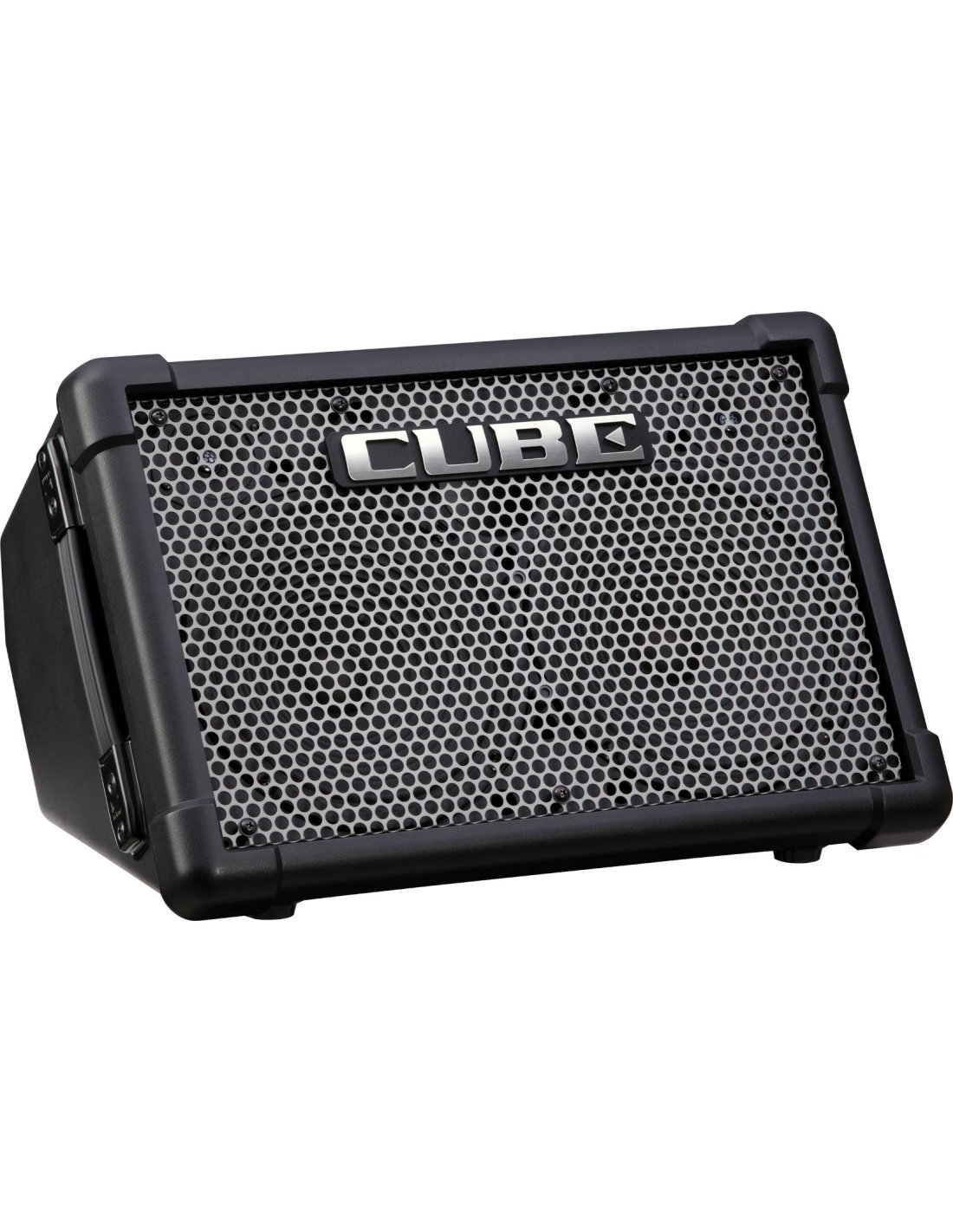 The Roland Cube Street Ex 50W is a 50-watt stereo electric/acoustic/mic guitar amplifier with a stage floor monitor design. Equipped with 4 independent channels, 2 XLR inputs, COSM technology and integrated effects, 3-band equalizer, tuner, Audio In (i-CUBE LINK), Line In, Aux In stereo, Line Out stereo, headphone output, 2 8” speakers and 2” tweeters. Power supply with adapter and batteries.