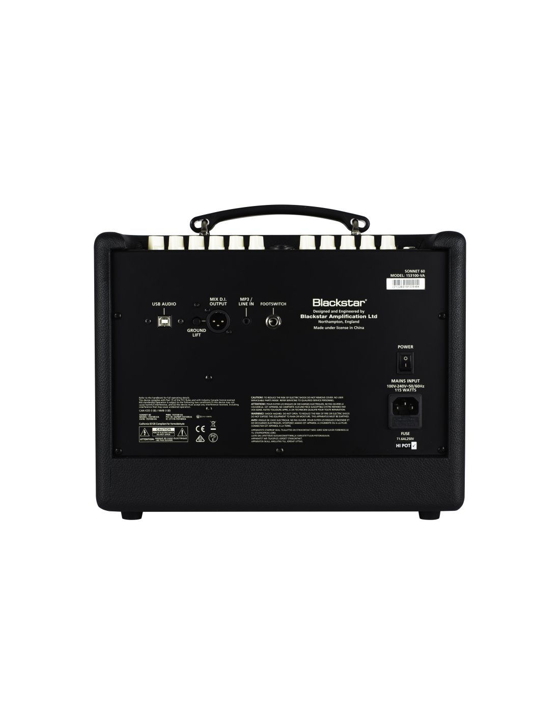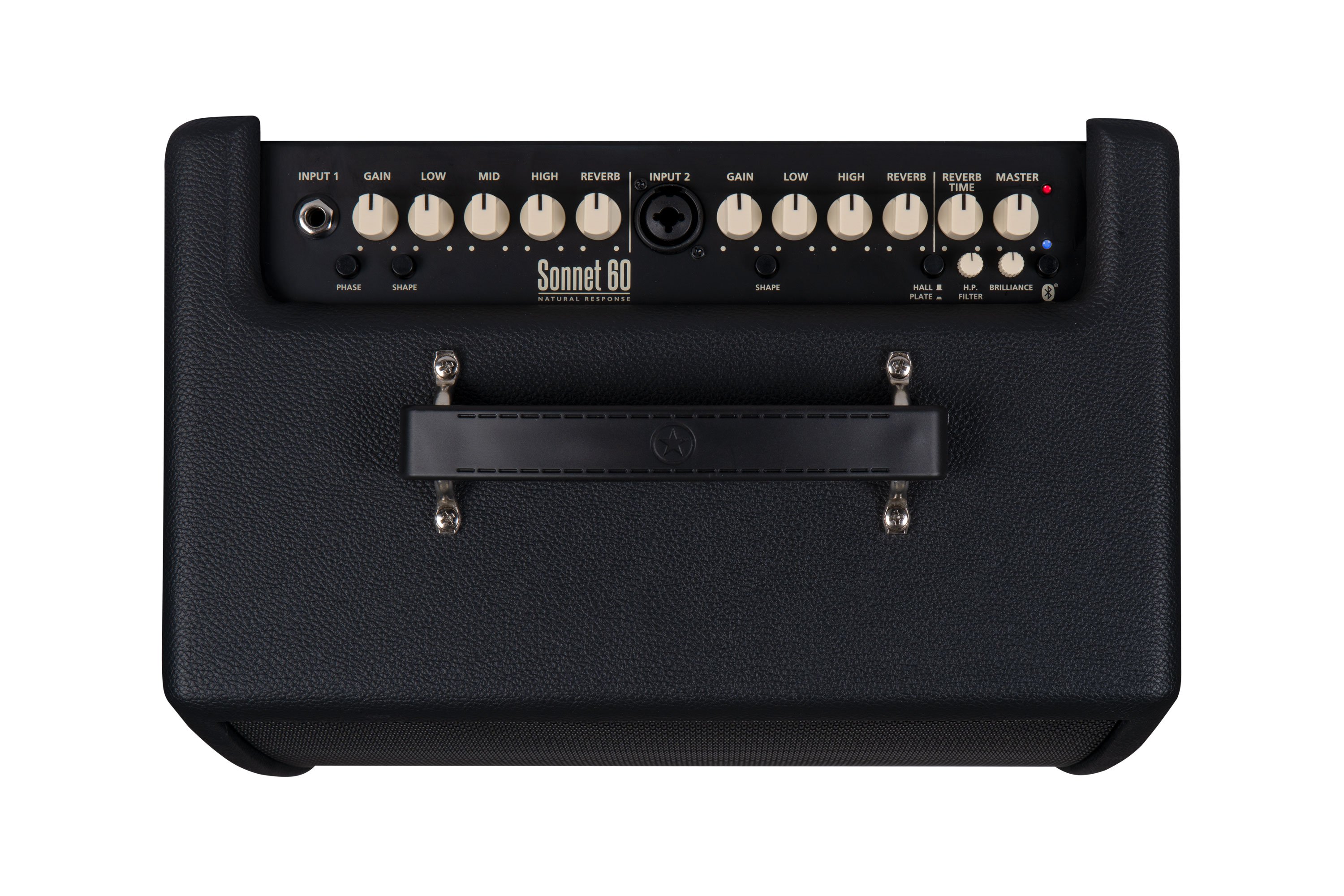 Blackstar Sonnet 60 Black Acoustic Guitar Amplifier. The Blackstar Sonnet 60 Black is a 60-watt acoustic guitar amplifier. It is equipped with 2 channels (Instrument/Mic) with independent controls, Reverb (Hall/Plate), Bluetooth, MP3/Line In input, XLR DI output, USB Out,