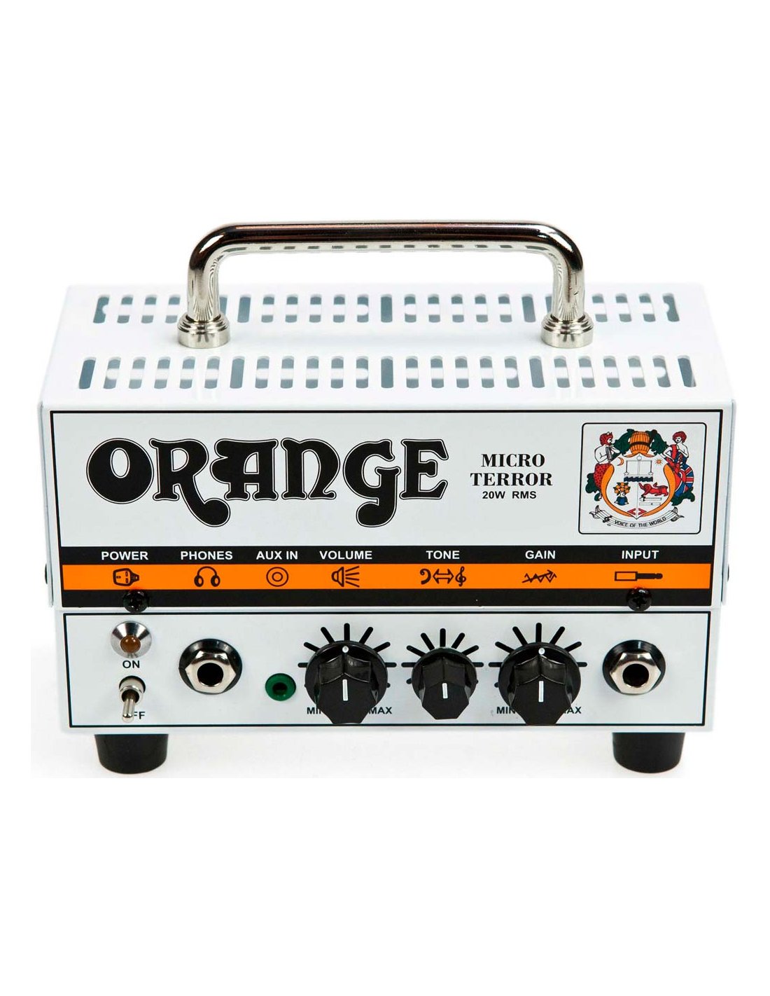 Electric guitar head. 20w. 1 channel. Volume, tone and gain control. 1 ECC83/12AX7 valve in the preamplifier. 3.5 mm jack auxiliary input for CD/MP3. 8ohm speaker output. Dimensions: 165 mm x 135 mm x 95 mm. Weight: 0.85 kg. The lightest and most portable headboard on the market.
