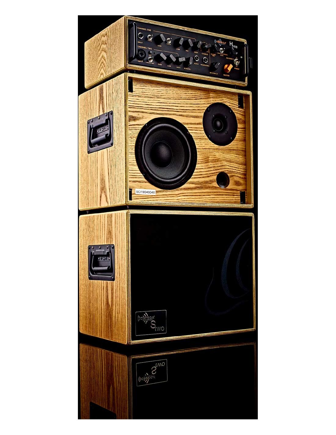 SONE auxiliary speaker (designed for use with the HONE head). 150 Watt at 4 ohms. 6.5-inch speaker + 3-inch tweeter. Recommended for instruments with medium frequency ranges: acoustic and classical guitar, folk instruments, violin, ukulele, etc. Frequency range from 40Hz to 20Hz. INCLUDES PADDED CARRYING CASE. (To cover a full frequency range and make the most of the amplifier, we recommend using it in combination with the STWO speaker)