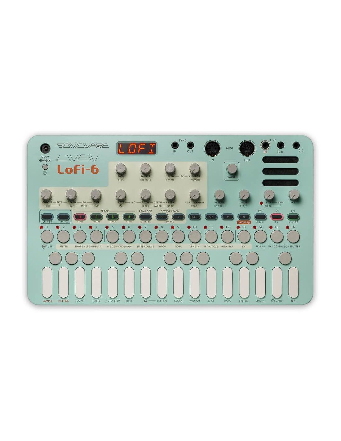 Groove box that combines a sound sampler and a step sequencer. Features: 16-bit, 6kHz sampler, 10-voice polyphony, 128 slots for sound samples; 4-track sequencer, 64 steps; 15 knobs for parameter control, 27-key keyboard (with Hold function), integrated speaker, audio input/output and headphone output with 3.5 mm jack, sync input/output with 3.5 mm jack, MIDI input/output, battery operation (6 AA batteries, not included) or with optional power supply (9V, 1A), dimensions 297 mm (W) x 176 mm (D) x 48 mm (), weight 790 g.