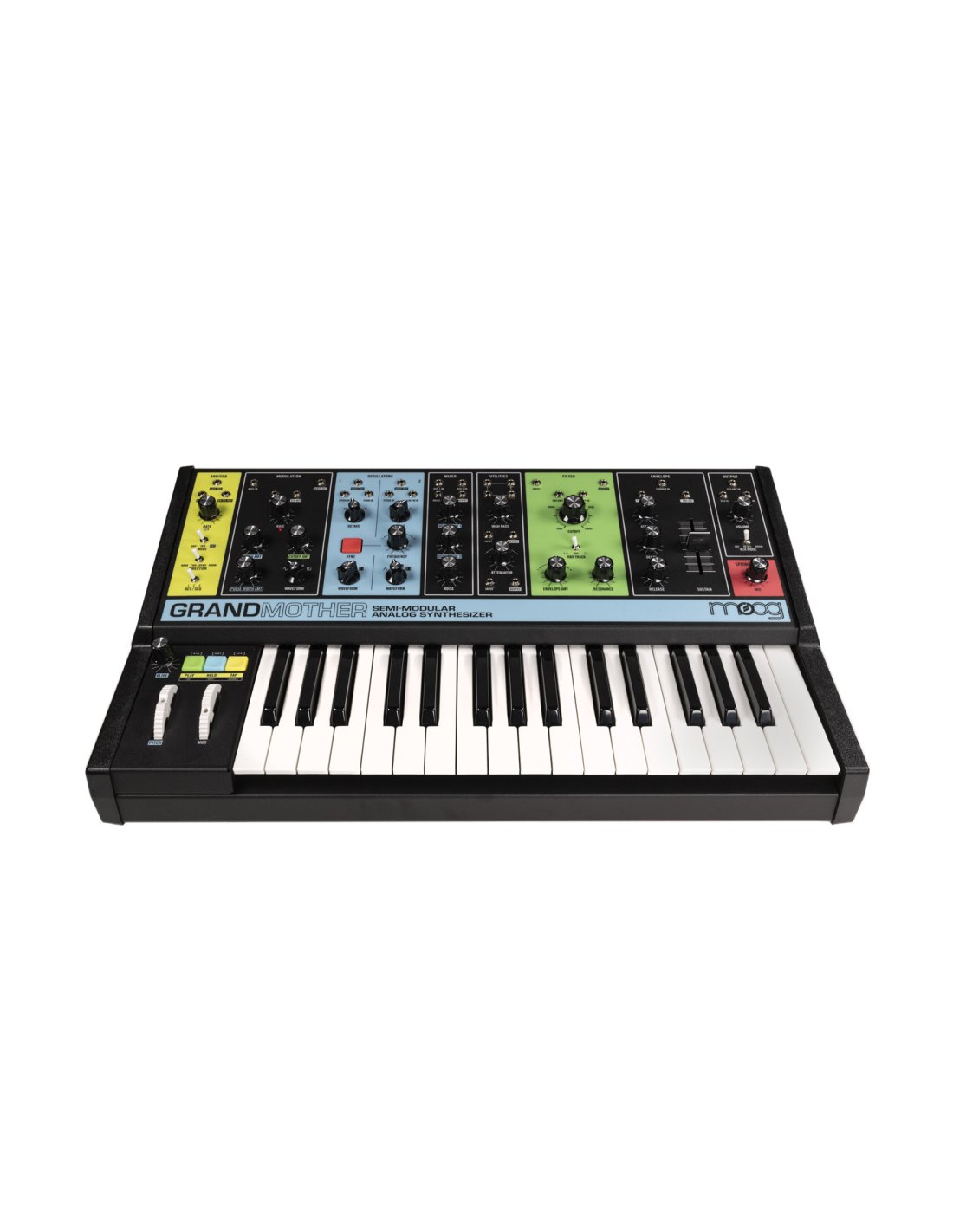 The Grandmother is an analog synthesizer from Moog. It has a semi-modular design that does not require any patches, easy-to-use arpeggiator and sequencer, 2 oscillators, 4-Pole Ladder filter and spring reverb. It can work with a Mother-32, DFAM or Eurorack modular system