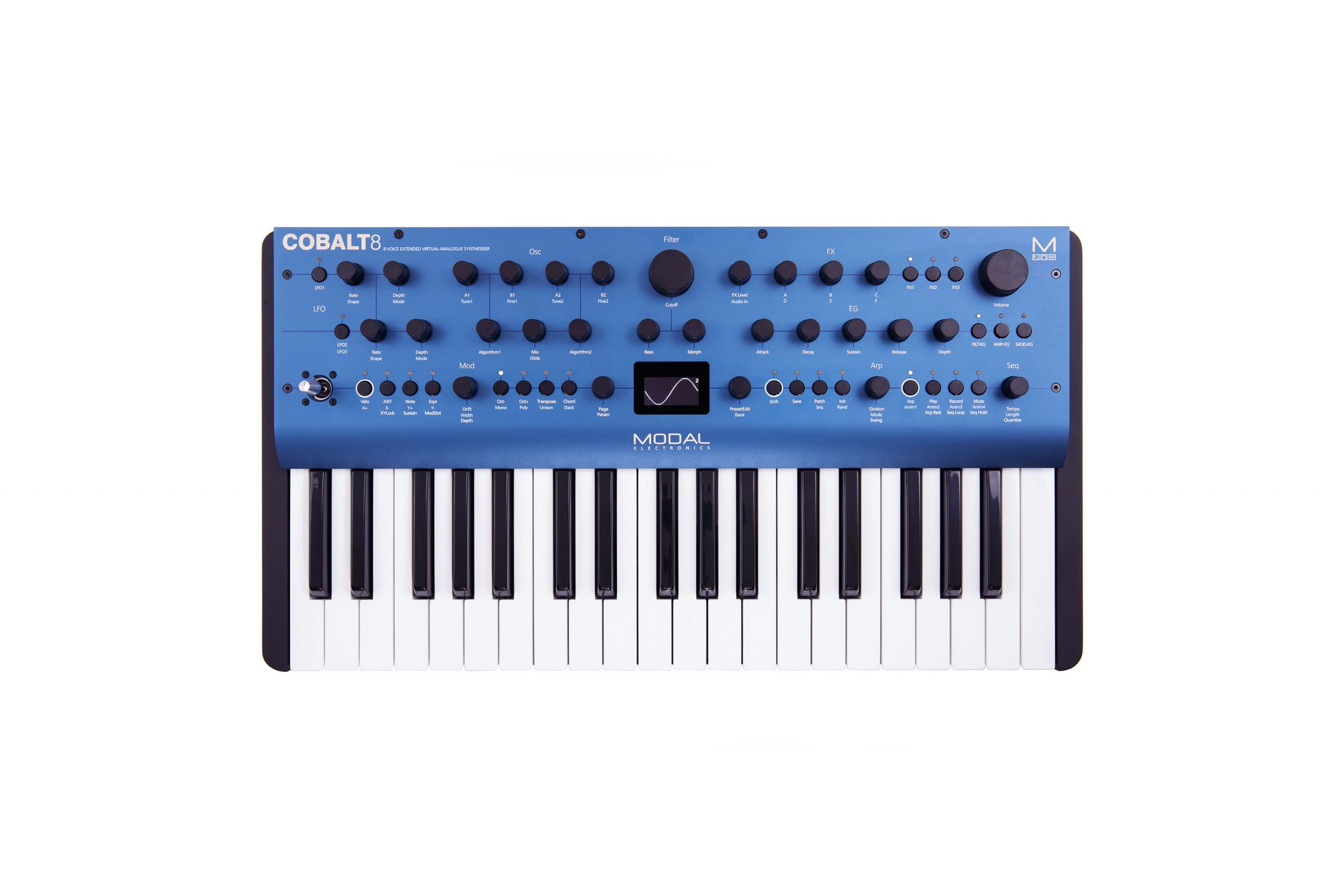 The Cobalt8 is a polyphonic analog-virtual synthesizer from Modal. It is equipped with two groups of oscillators with selectable algorithms and 4-Pole Ladder, 3 dedicated envelope generators for 512-step real-time filter, amplitude and modulation sequencer, 32-step programmable arpeggiator, 3 independent stereo effect engines and OLED display