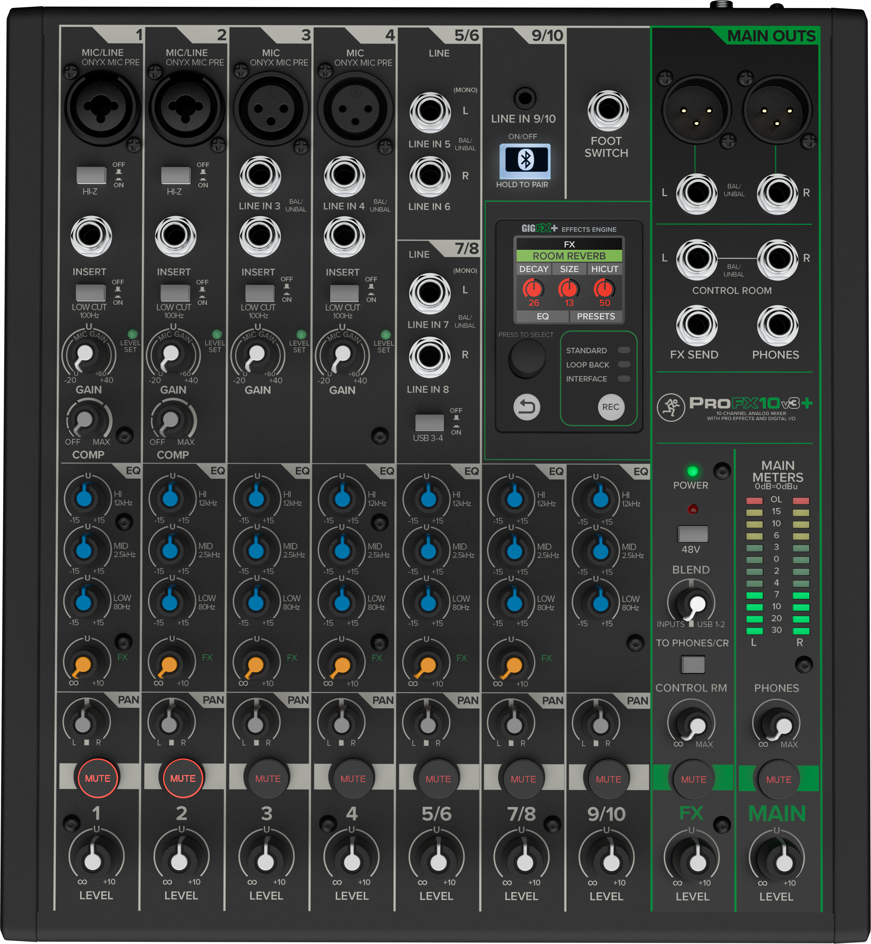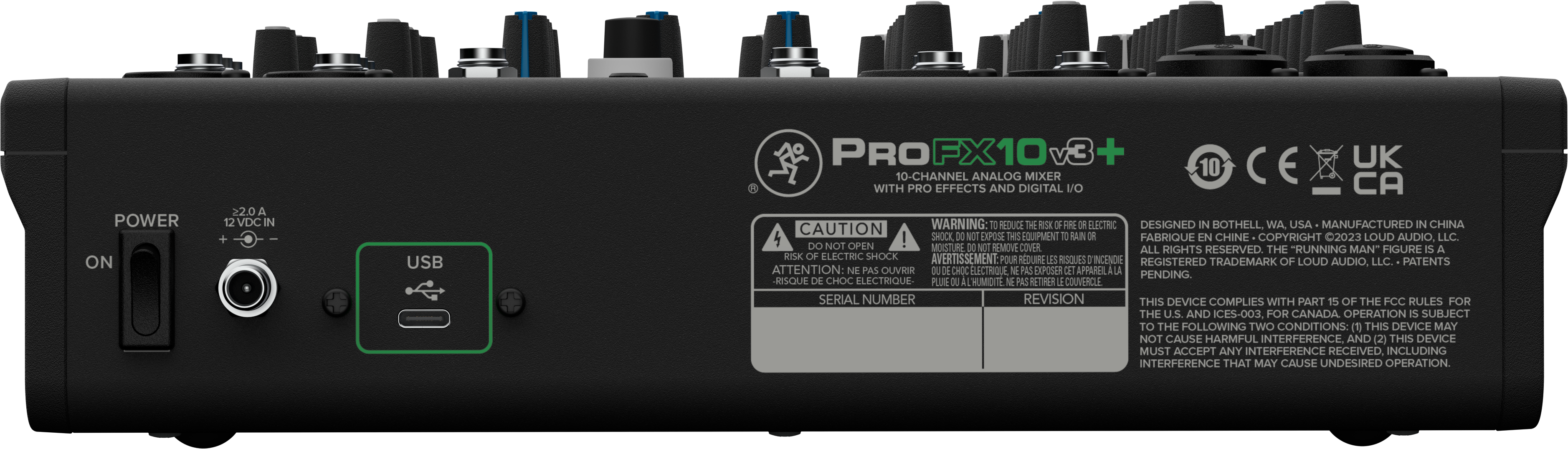 Mackie ProFX10v3+ is a professional 10-channel analog mixer and USB-C audio interface with powerful enhancements for studio-quality recording and live streaming.