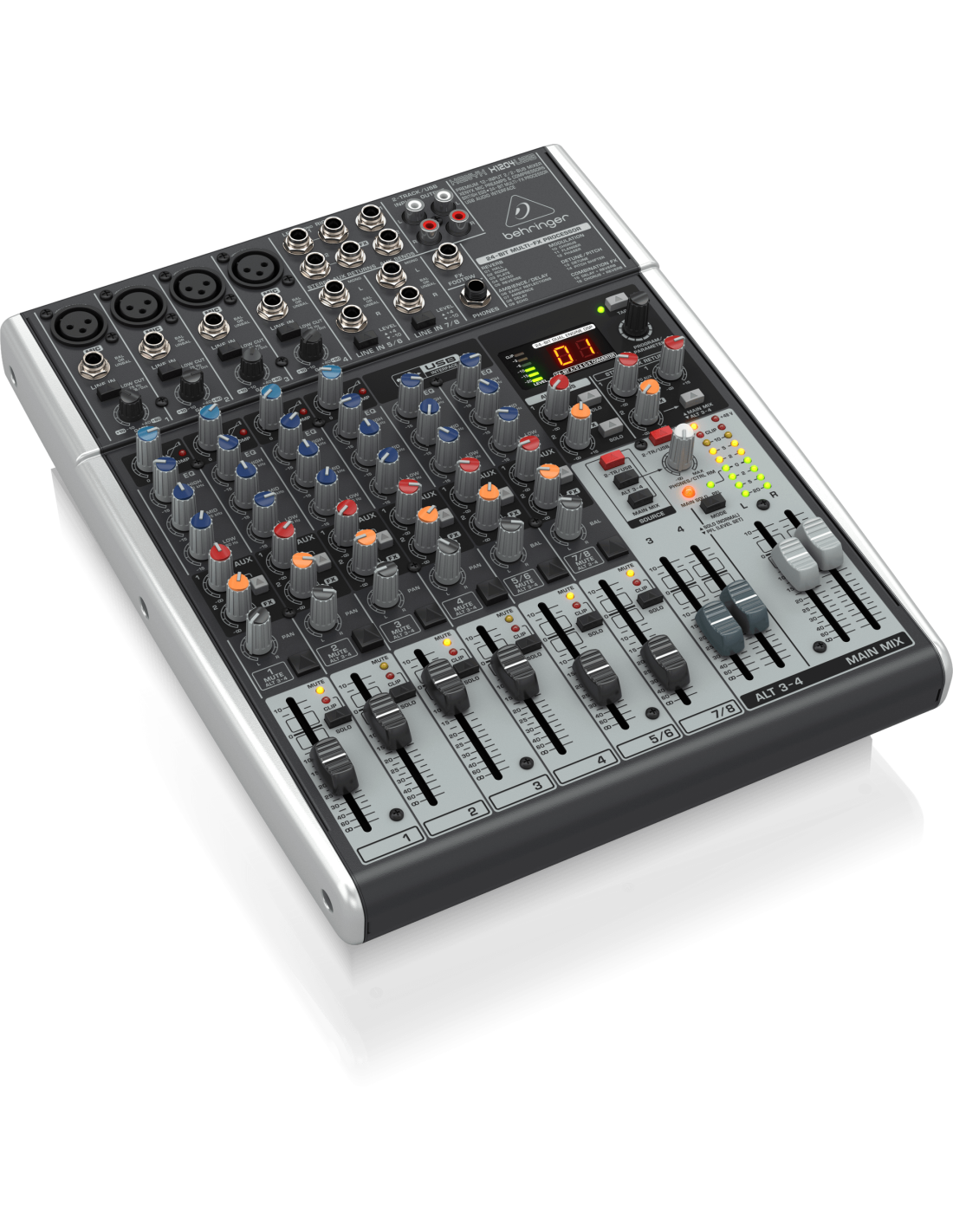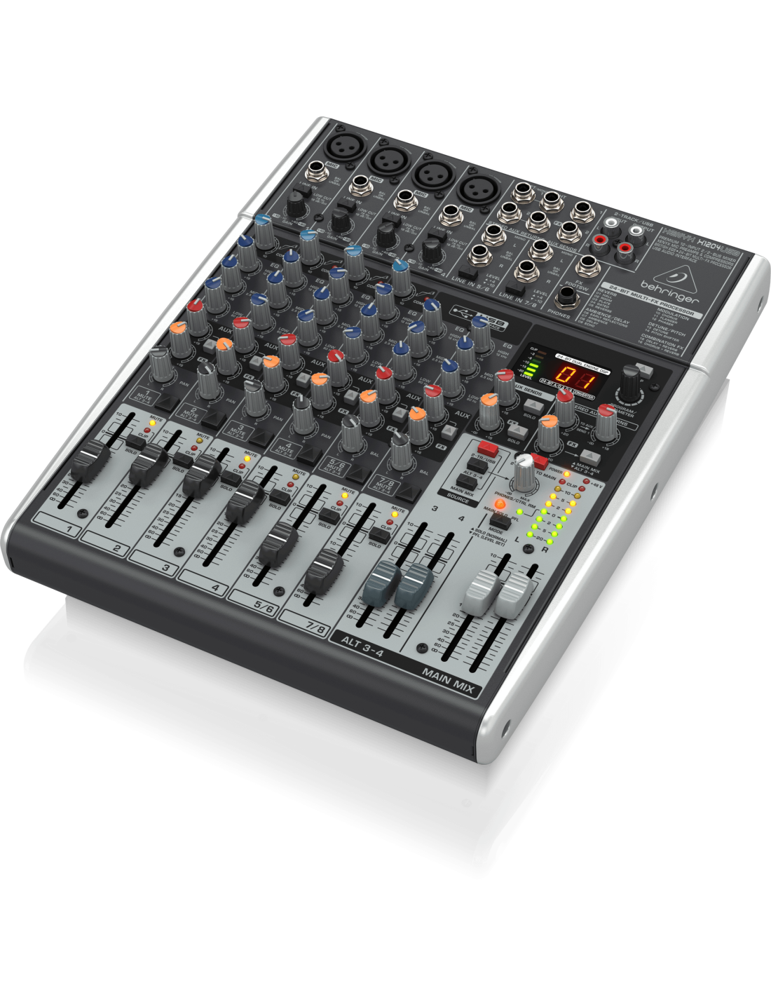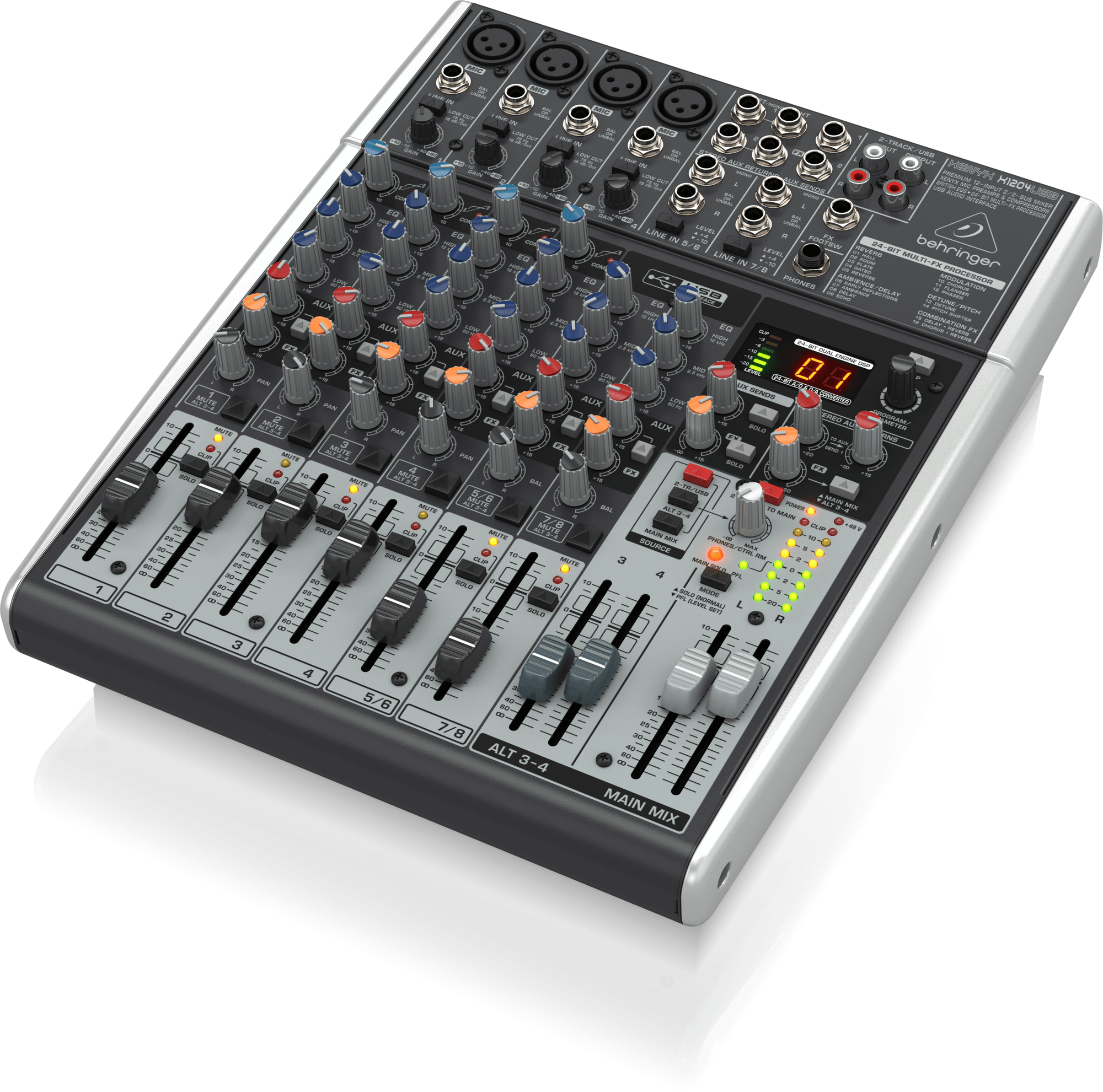 The X1204 is a Behringer analog mixer with 4 XENYX Phantom Powered preamps, 4 studio-grade compressors, 2 aux sends per channel, including 1 switchable pre/post fader for Monitoring/FX applications and 1 post fader, Clip LED, mute/alt 3-4, and PFL functions on each channel, 2 subgroups with separate outputs, 2 multifunction stereo Aux returns, balanced main mix outputs with XLR connectors, the ong-wearing 60 mm logarithmic-taper fader, 3-band EQ, studio-grade FX processor with 16 customizable presets, Tap function and integrated USB/stereo audio interface