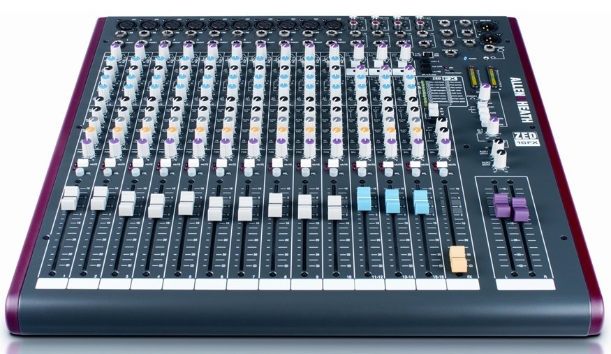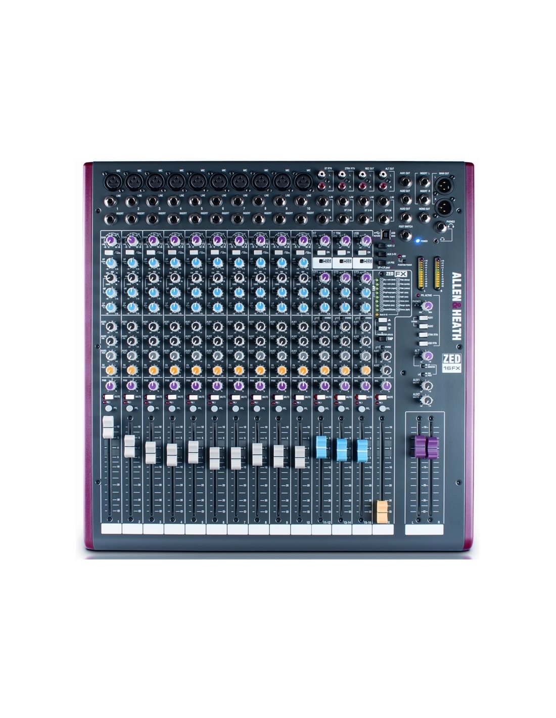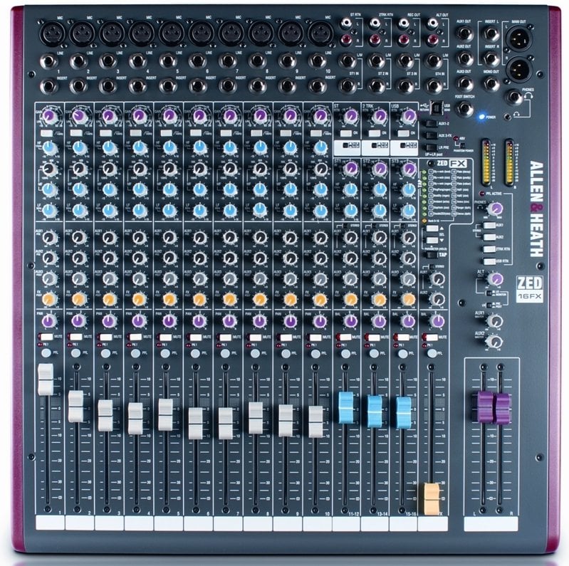 The ZED 16FX is an Allen & Heath analog mixer with 10 microphone/line inputs, 3 stereo channels with 2-band EQ, 16 time-delay effects, Neutrik XLR microphone inputs, Neutrik 1/4” jack inputs, microphone input, DuoPre™ super wide gain microphone input, 3-band EQ with MusiQ, 2 pre-fade Aux sends, 1 post-fade Aux return, 1 FX output, illuminated PFL indicator & audio peak warning, 100mm ALPS fader, USB configurable and mono/stereo functions on aux 1 and 2. Cakewalk SONAR X1 LE bundle