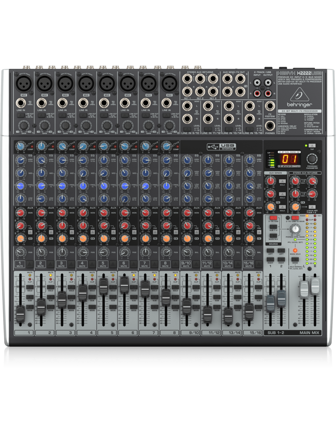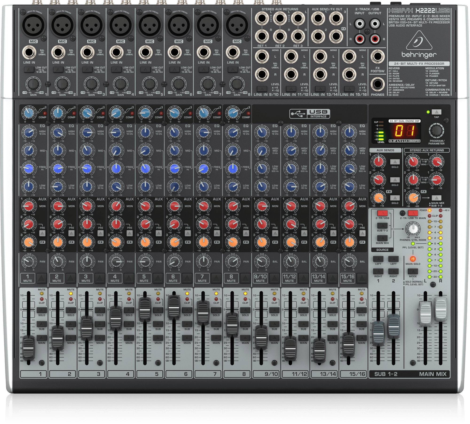 BEHRINGER XENYX X2222 USB is a 22-channel USB analog passive mixer with integrated audio interface.