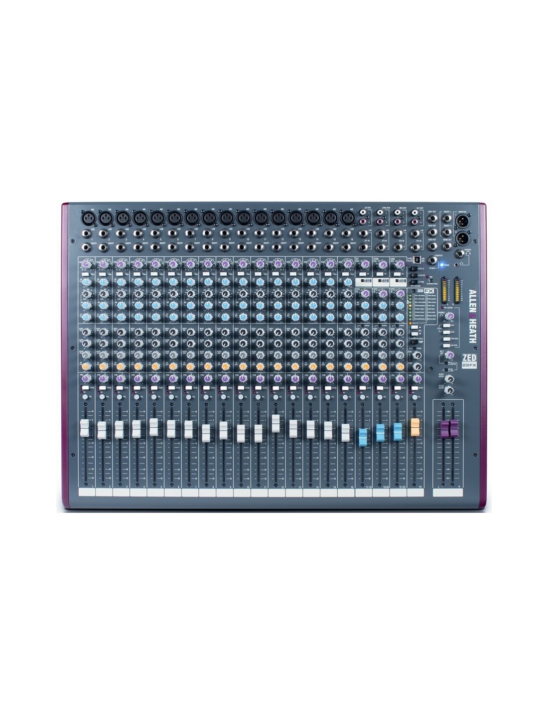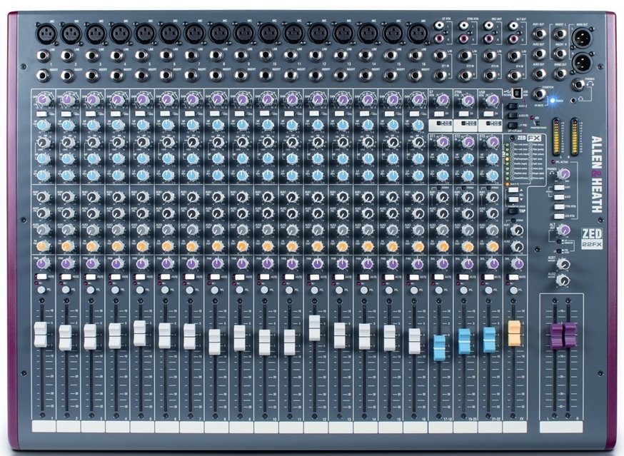 The Allen & Heath ZED 22FX is an analog mixer with 16 mono channels, 16 time-delay effects, Neutrik XLR microphone inputs, Neutrik 1/4” jack inputs, DuoPre™ super wide gain microphone input, 3-band EQ with MusiQ, 2 pre-fade Aux sends, 1 post-fade Aux output, 1 internal effects output, illuminated PFL & peak warning indicator, 100mm ALPS fader, 4 stereo channels with 2-band EQ, configurable USB audio out and mono/stereo functions aux 1 and 2. Cakewalk SONAR X1 LE bundle