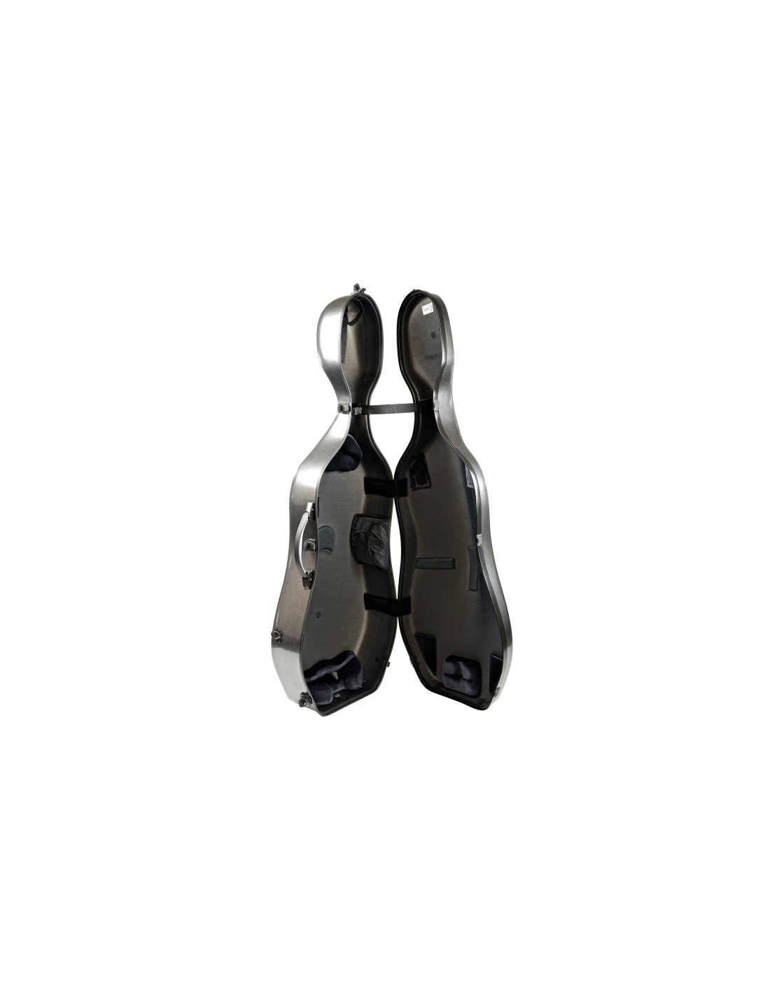 1004XLSCT COMPACT CELLO CASE - TWEED Shell produced with the Bam Hightech technique: a triple layer structure made of high-performance materials (ABS, Airex foam, another type of ABS) Total internal suspension of the instrument on injected foam cushions Exceptional protection and ultra light weight 2 bow holders Fixation to the curl and keyboard Elastic band to fix the tip during transport Internal string pocket Comfortable side handle in two materials 5 closures soft-touch with key Male/female hermetic seal 2 comfortable non-slip neoprene backpack straps with safety screw hooks Weight 4 Kg External dimensions 136x51x32 cm