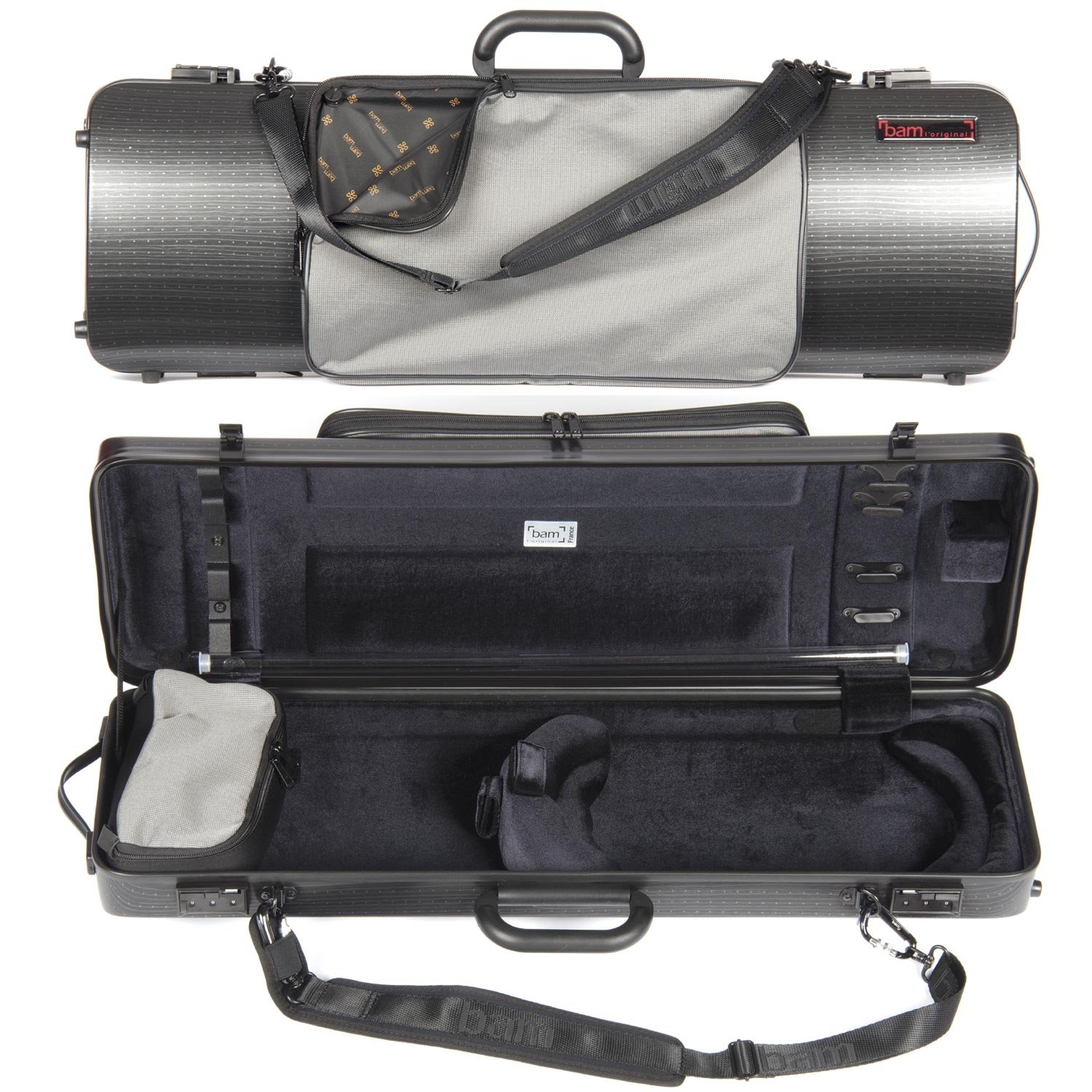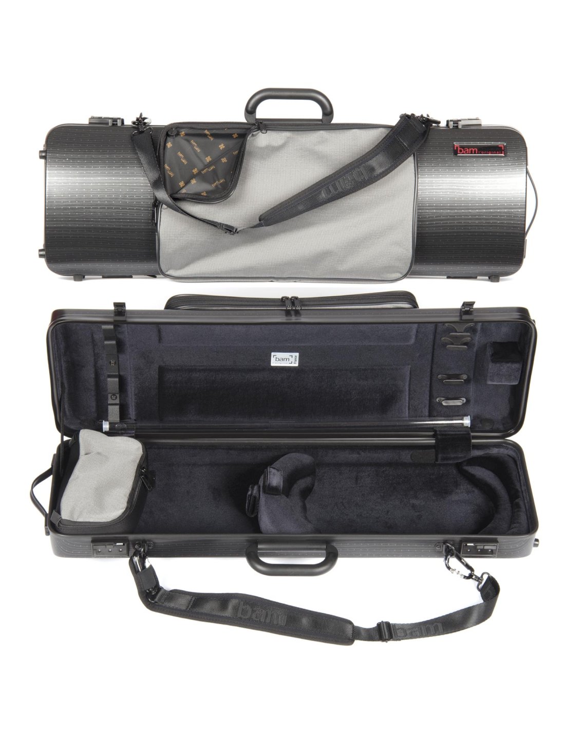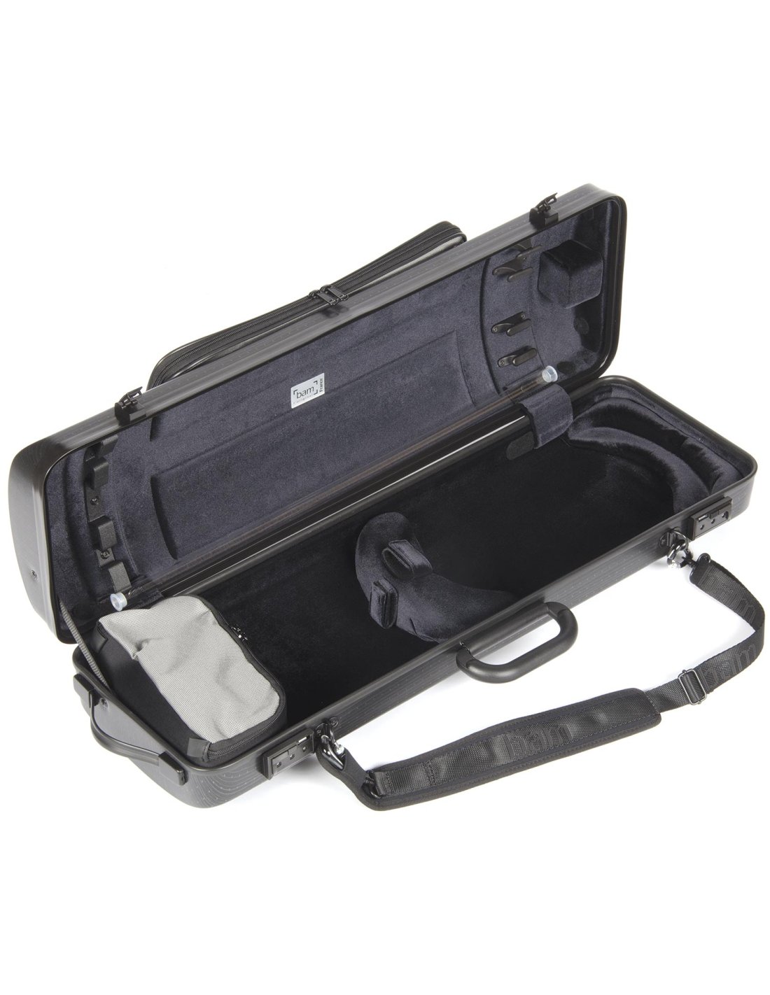 '2011XLLB HIGHTECH OBLONG VIOLIN CASE WITH POCKET - LAZURE BLACK Weight: 2.4 kg Internal Dimensions: Total Length: 61 cm, Body Length: 38 cm, Upper Attachment: 22 cm, Lower Attachment: 22 cm External Dimensions: 77x27x16 cm Internal Features: Total suspension of the instrument on injected foam cushions, Removable inner pocket for 4 headband holders, Strap for a Kun style backrest External Features: Caps made with the Bam Hightech technique: a triple layer structure made with the Bam Hightech technique: a triple layer structure made with the Bam Hightech technique with high-performance materials (ABS, Airex foam, another type of ABS), Exceptional protection and ultra-light weight, 2 comfortable neoprene backpack straps with safety screw hooks, Side handle, subway handle, 2 combination closures, hermetic male/female closure, non-slip and wear-resistant rubber patches on the lower outer shell, External pocket for A4 format music