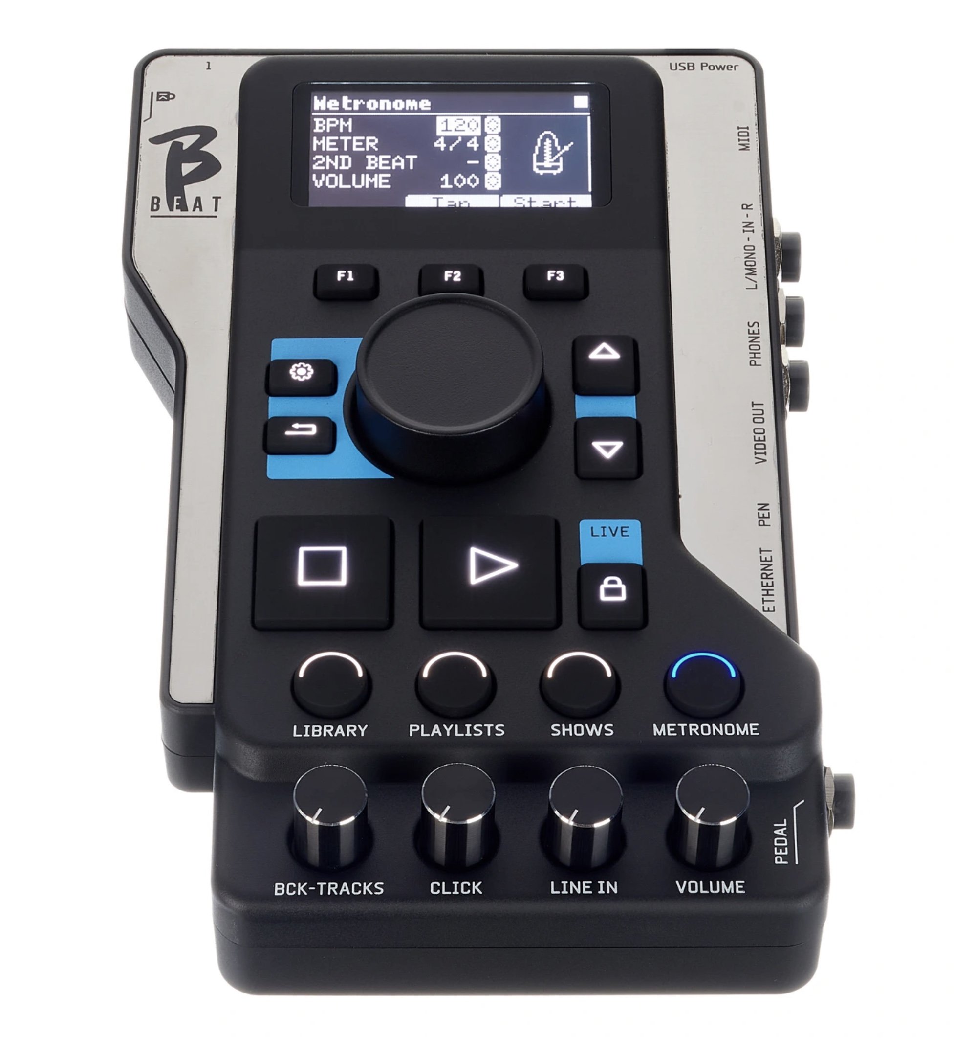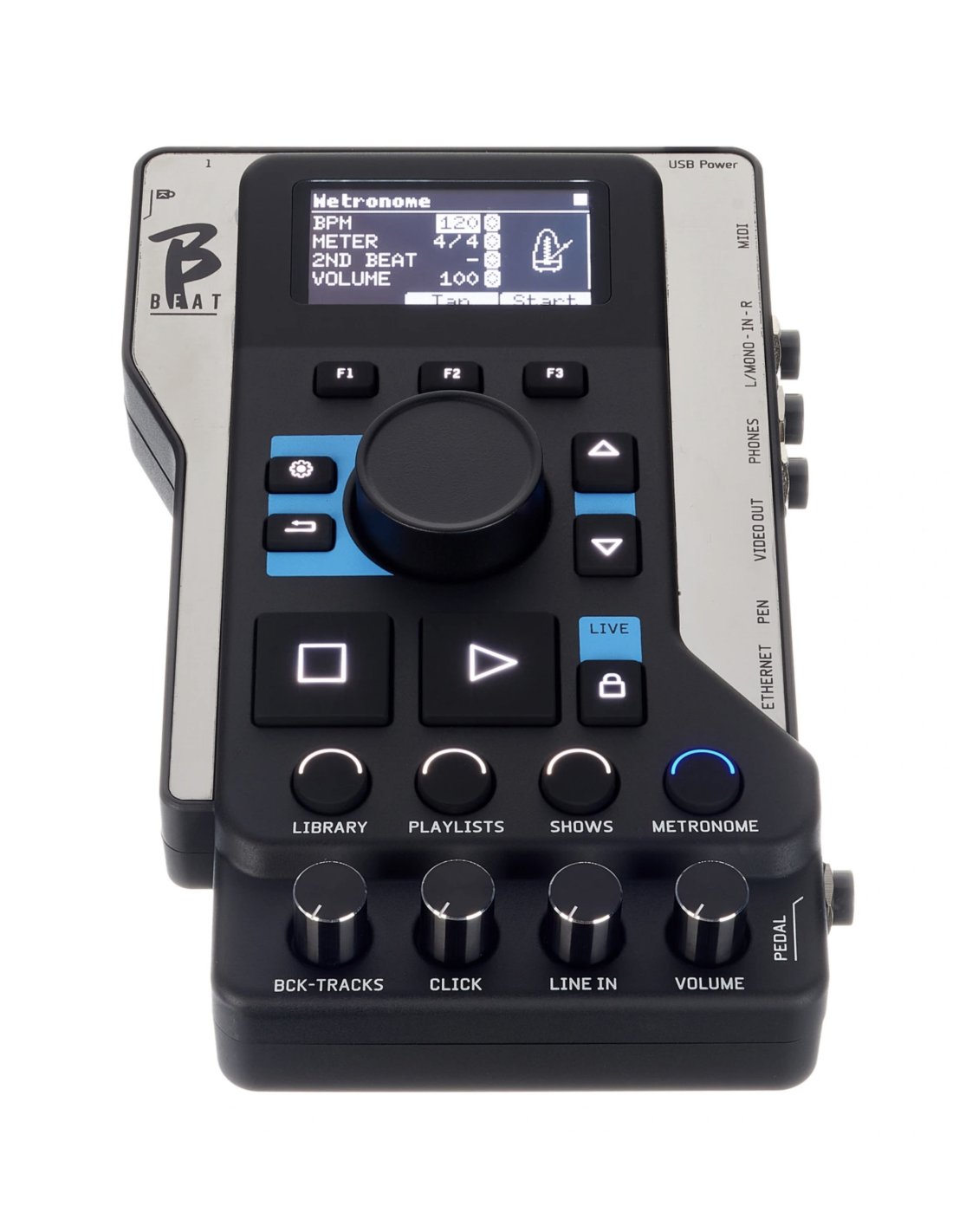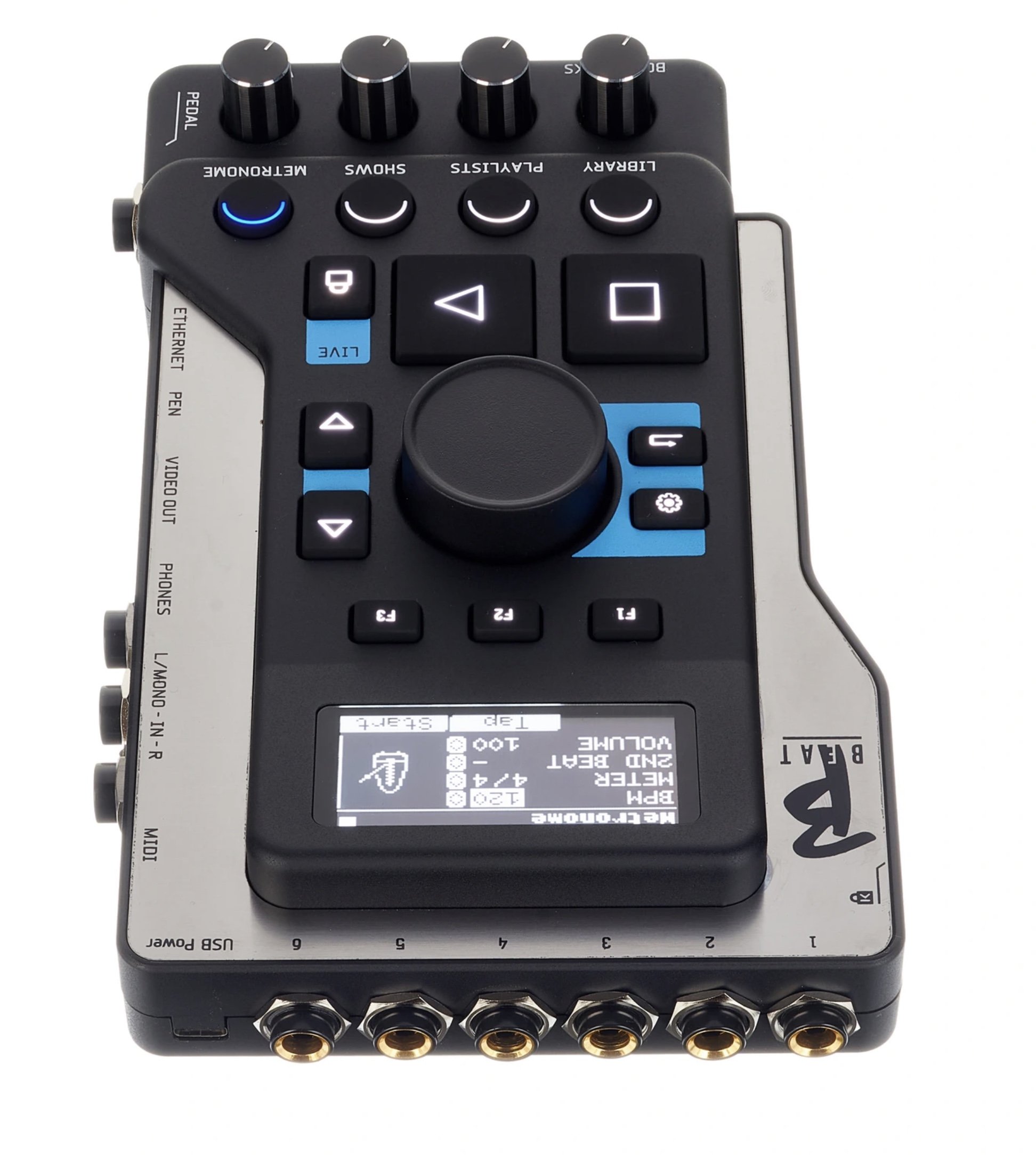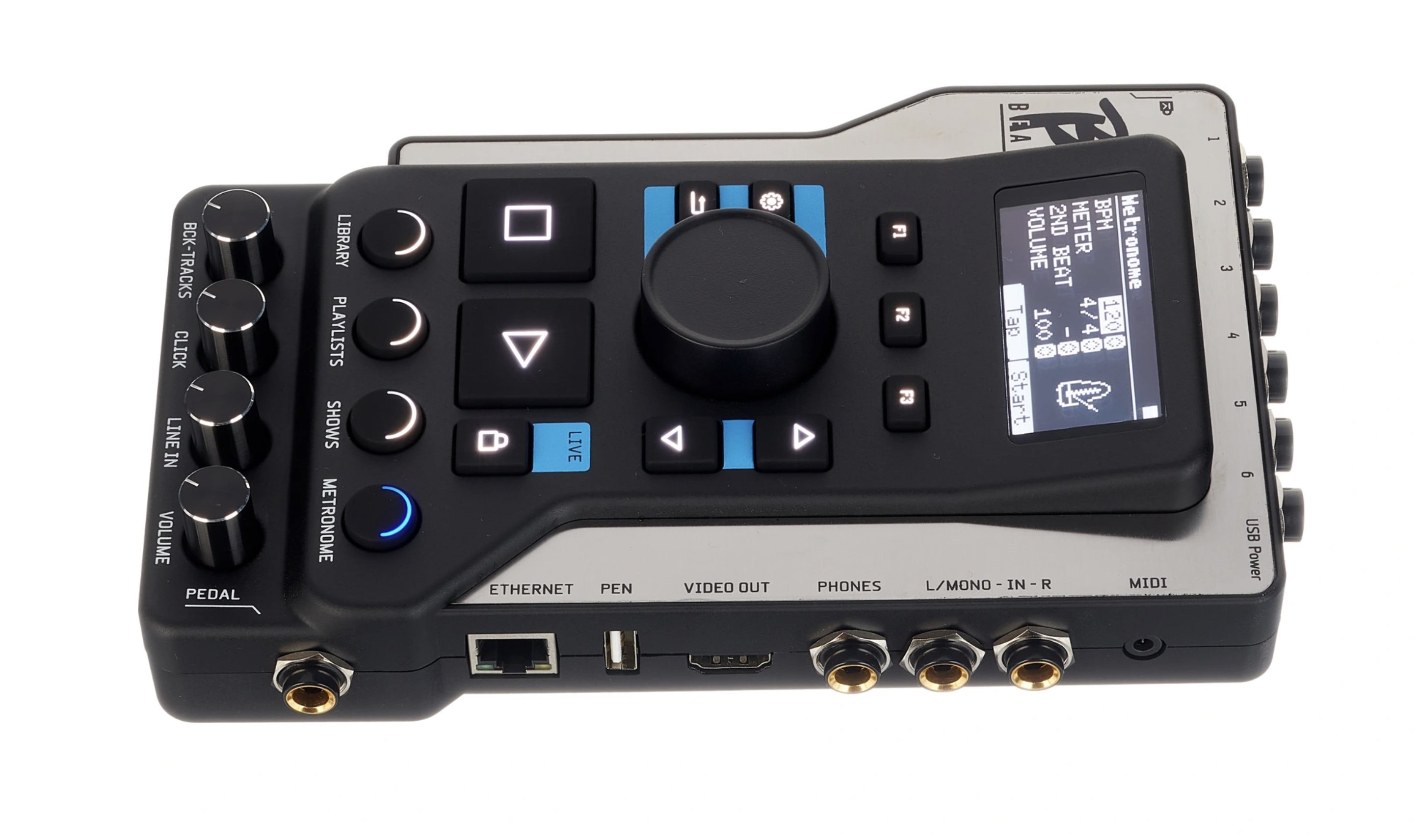 The B.Beat 128GB Limited Edition is an M-Live audio and video multitrack player. It is equipped with WI-FI and integrated mixer, 2.4" OLED display, 128 GB internal storage capacity, HDMI connection for video at a maximum resolution of 1920x1080. It can transmit texts and agreements to external devices via WLAN