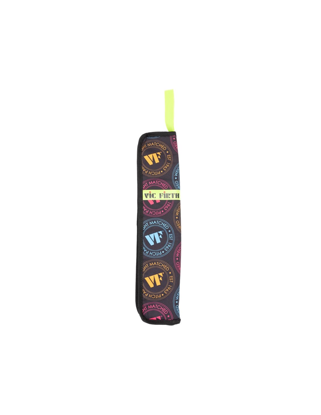 The Vic Firth VXSB00201 VIC FIRTH ESSENTIAL STICK BAG NEON is a chopstick bag that can hold 4-5 pairs of chopsticks and mallets.