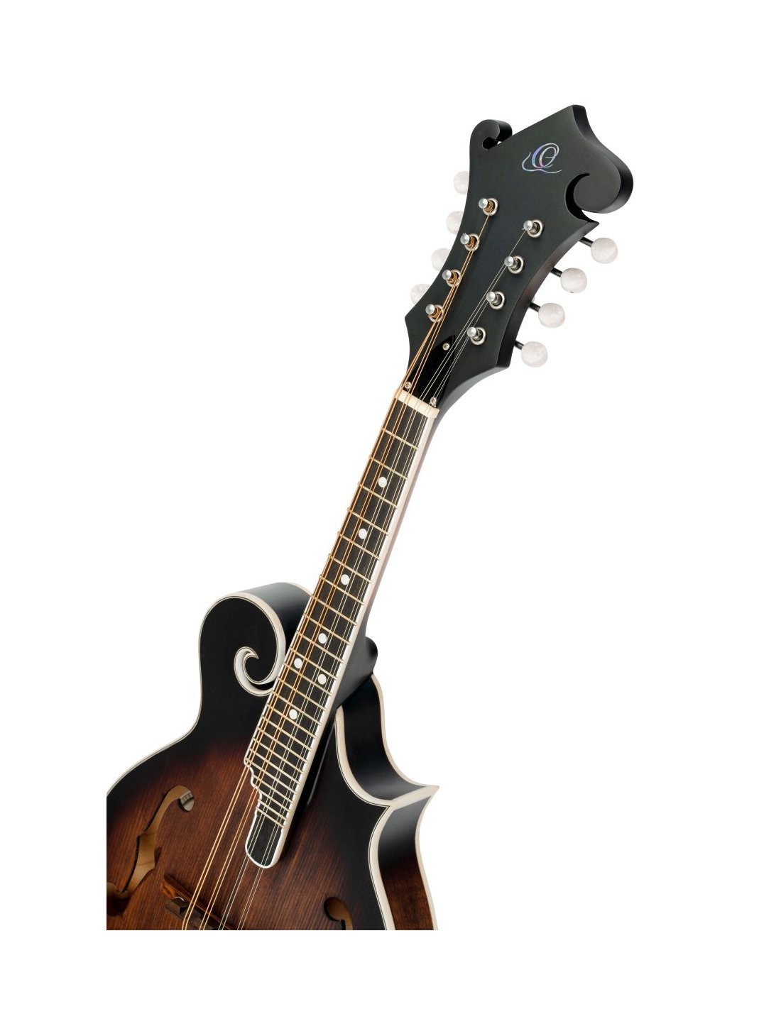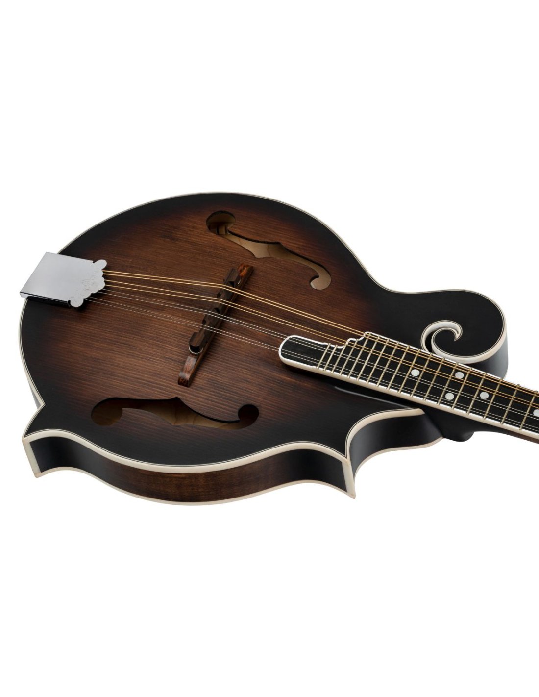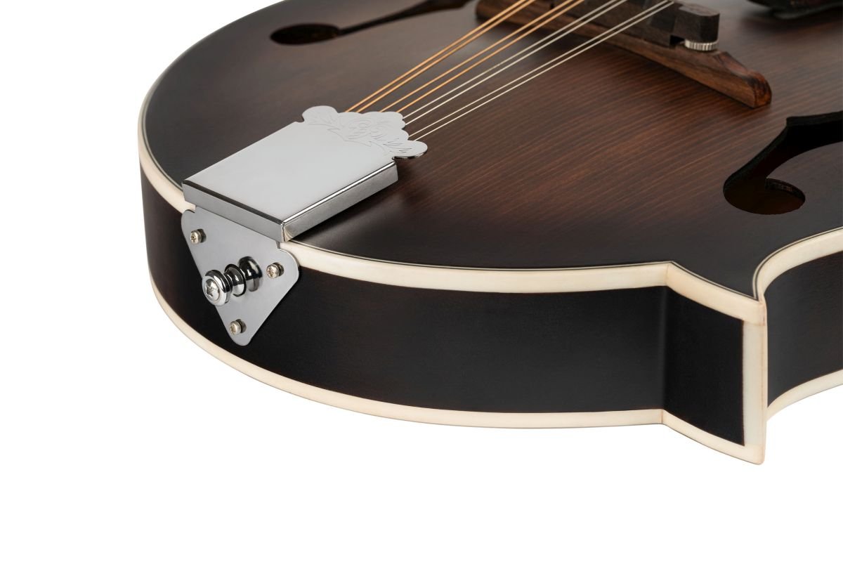 'F-Style Satin Whiskey Burst Mandolin The Americana series blends traditional looks with modern features, just like its musical roots. Finishes such as Distressed Satin Whiskey Burst or Distressed Satin Denim emphasize its origin. In the Americana series you can find the typical instruments for blues, bluegrass and folk. Mandolins have the very popular Florentine shape with a snail shape on the body and an additional snail shape on the head plate. Spruce top, whiskey burst satin finish Maple back and sides, satin whiskey burst finish Maple handle, satin whiskey burst finish Rosewood fingerboard 22 frets F Style 350mm/13.78" Head Width: 28mm '