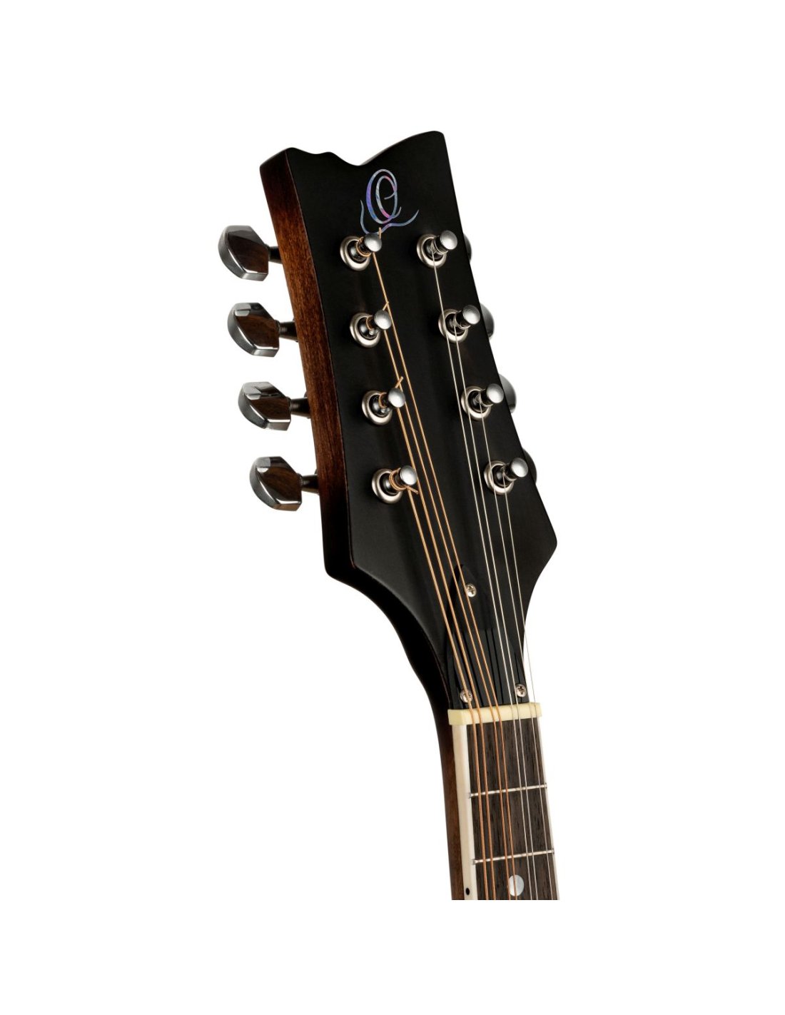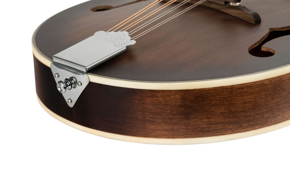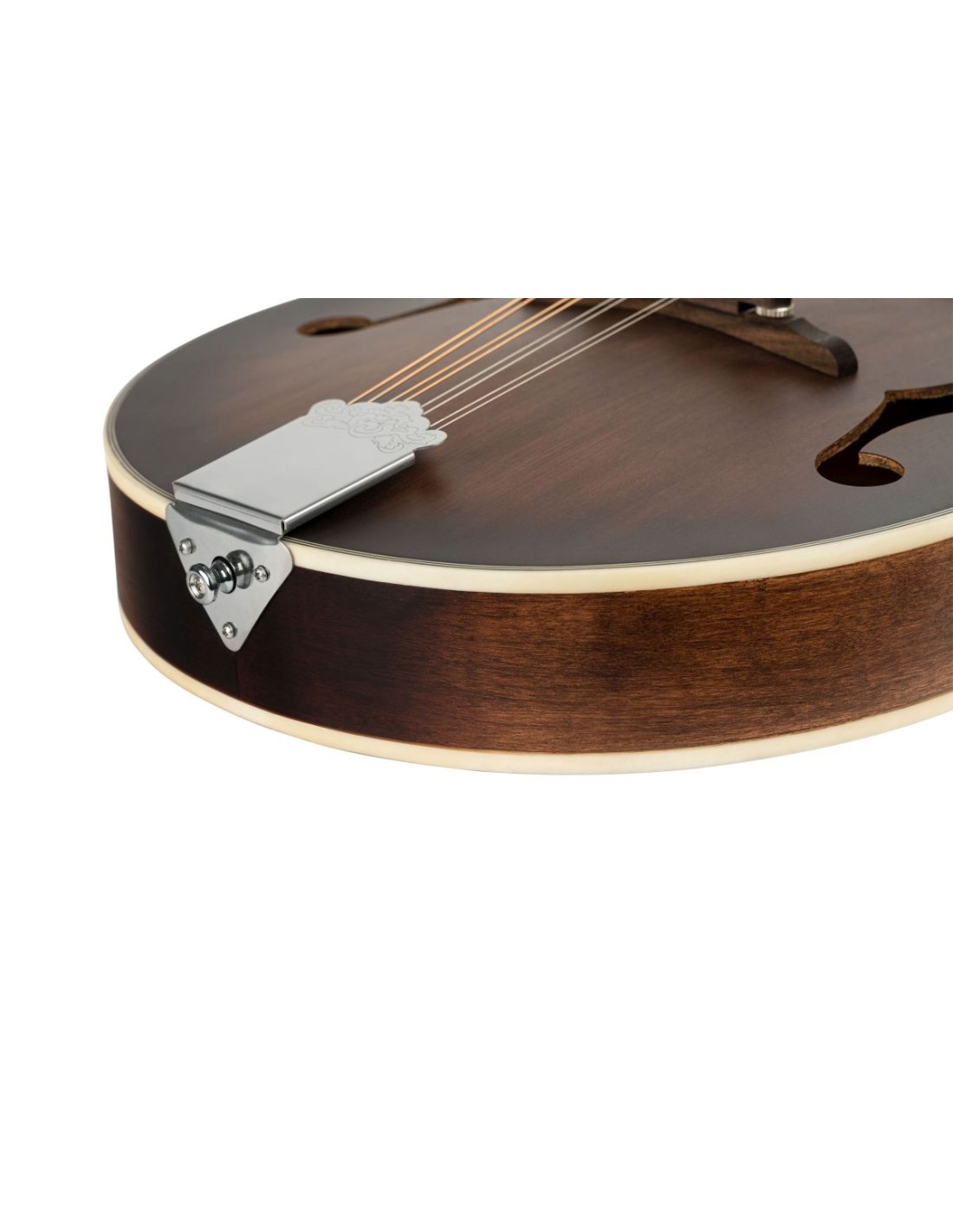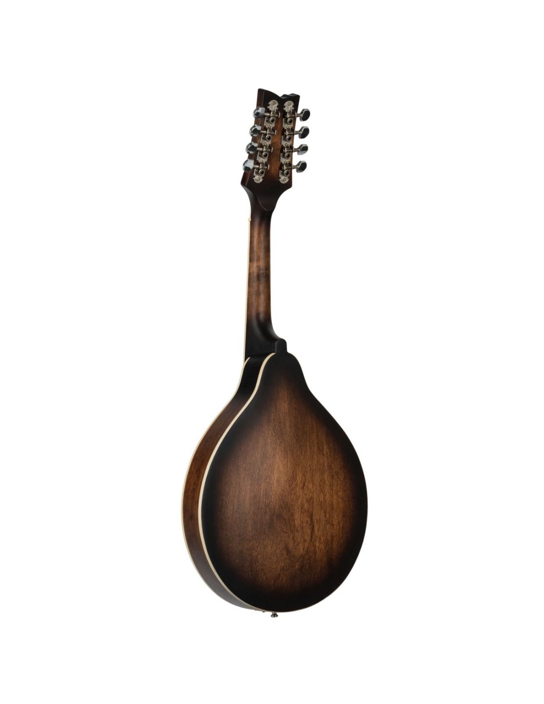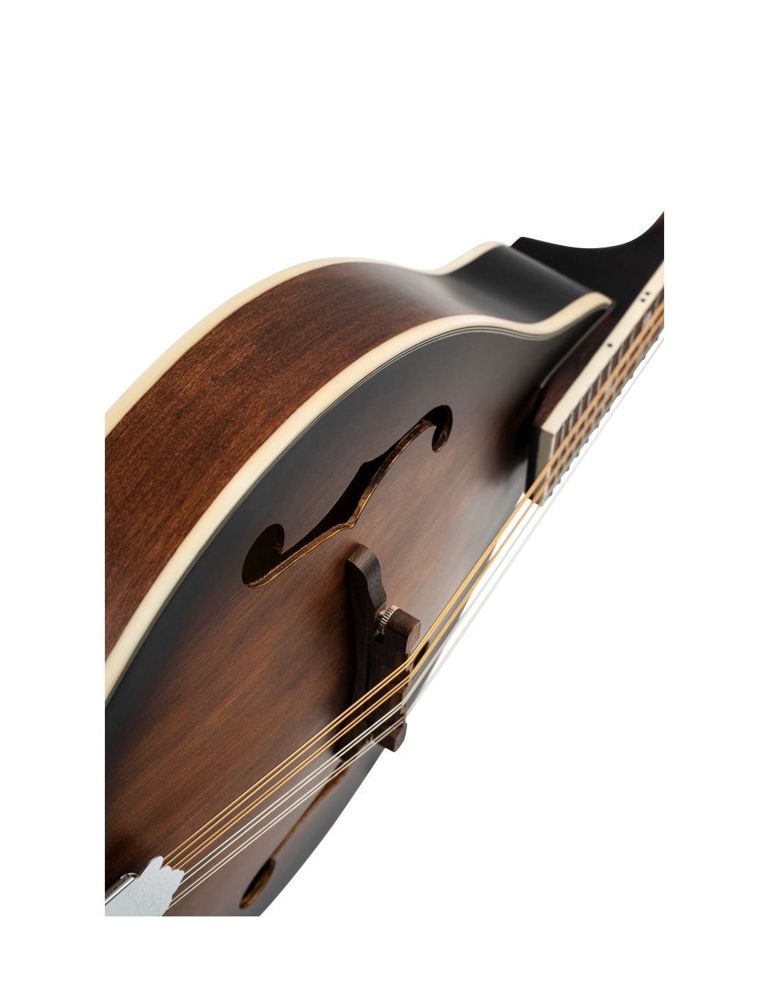'A-style Satin Whiskey Burst mandolin. The Americana series blends traditional looks with modern features, just like its musical roots. Finishes such as Distressed Satin Whiskey Burst or Distressed Satin Denim emphasize its origin. In the Americana series you can find the typical instruments for blues, bluegrass and folk. Spruce top, whiskey burst satin finish Maple back and sides, satin whiskey burst finish Maple handle, satin whiskey burst finish Rosewood fingerboard 20 frets Scale: 350mm/13.78" Head Width: 28mm Ortega2023 '