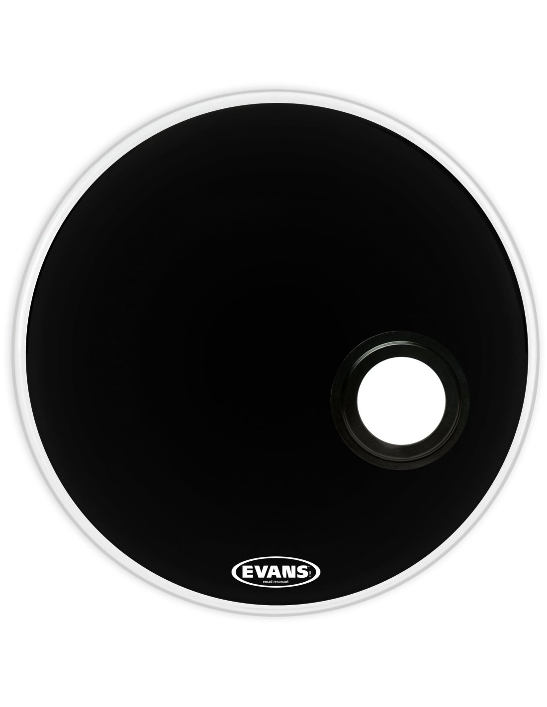 Evans BD18REMAD BLACK battery skins. Black color. The Evans BD20REMAD are resonant drum heads for 20” bass drums. The E-MAD system mounted around the hole and modifiable allows the control of vibrations, attack, tone and sustain for optimal sound and microphonation, without the need for internal mutes or dampers