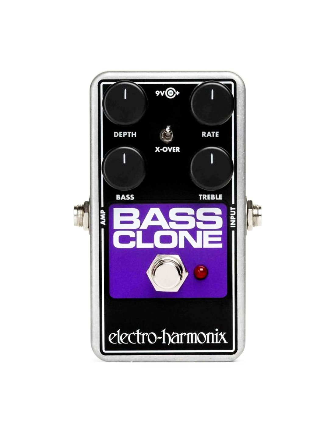 Electro Harmonix Bass Clone Chorus Bass Pedal. The Electro Harmonix Bass Clone Chorus is a pedal chorus based on the legendary Small Clone with additional bass features, true bypass. It is equipped with Depth, Rate, Bass, Treble controls and the X-Over selector