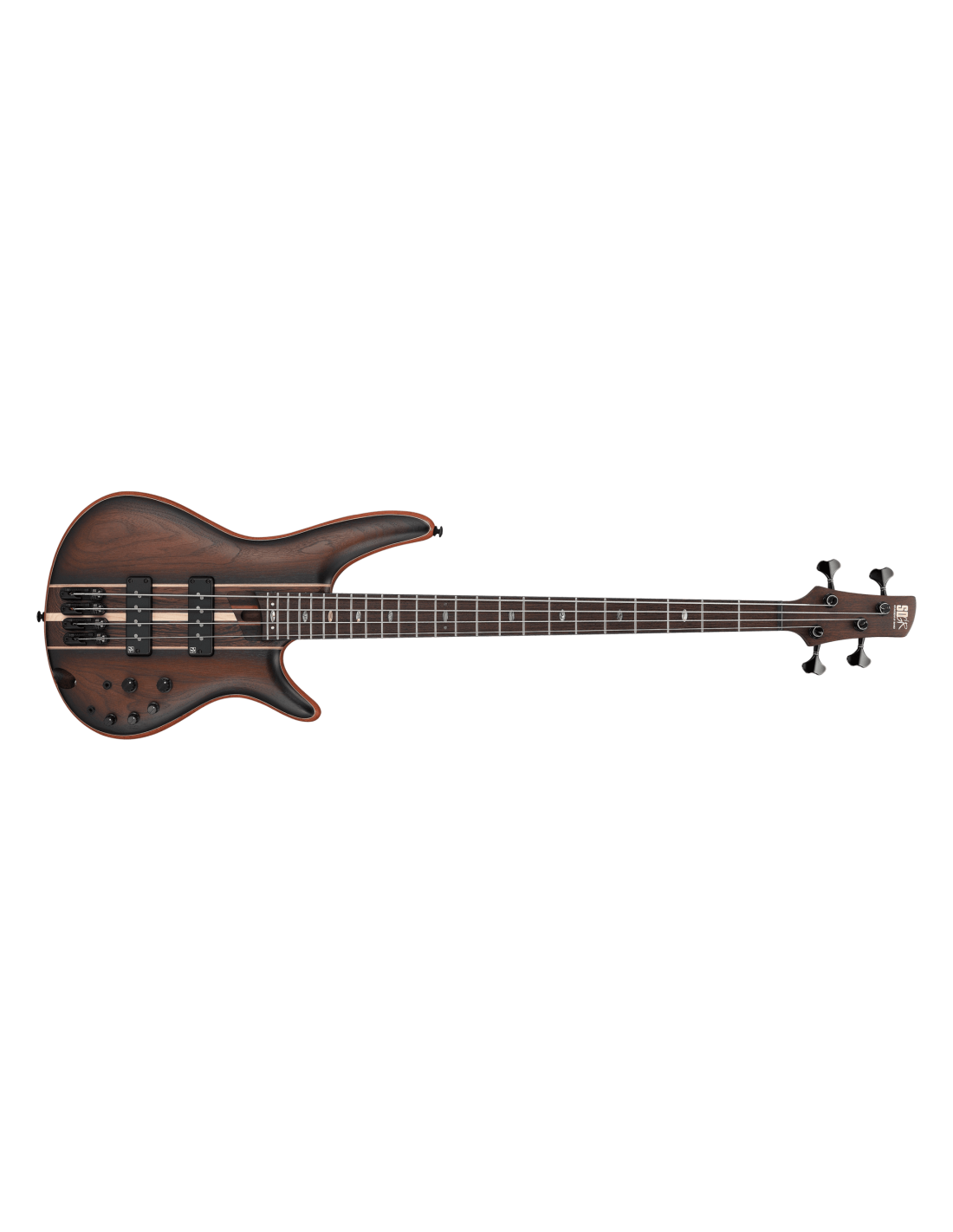 IBANEZ SR1350B-DUF. Ibanez SR series 4-string electric bass with Mahogany body, Walnut/Panga Panga/Maple top, 5-piece Panga Panga/Purpleheart Atlas-4 neck with KTS TITANIUM reinforcements, Panga Panga fingerboard with 24 Medium Jumbo steinless steel frets, abalone inlays and Dual Mocha Burst Flat finish. The electronics are equipped with 2 passive Nordstrand pickups, Ibanez Custom Electronics 3-band EQ with Volume, Tone and 2 Pickup Switch controls. It also features an MR5S bridge, Graph Tech BLACK TUSQ XL nut