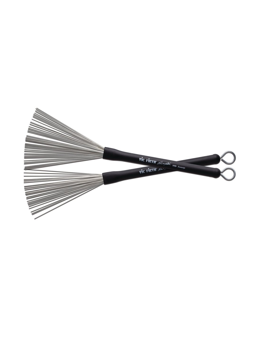 Vic Firth AB-RMWB Russ Miller Wire Brush The Vic Firth AB-RMWB Russ Miller Wire Brush are retractable metal brushes with aluminum and rubber handles. Made with the collaboration of Russ Miller, each pair consists of a 'Sweep' brush with thicker wires, designed for use on drums, and another 'Ride' that offers a greater rebound,