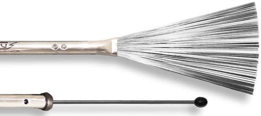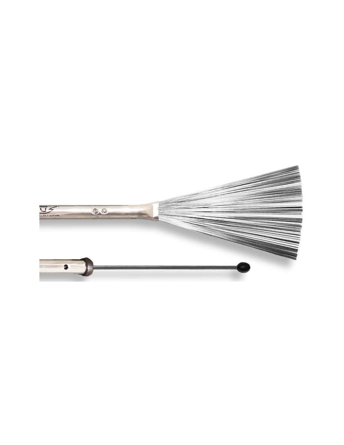 FACUS BRUSHES NAKED. Pair of harmonic steel wire brushes with a diameter of 0.33mm, with chrome-plated aluminum handle and 2-position locking system. Particularly suitable for traditional jazz.