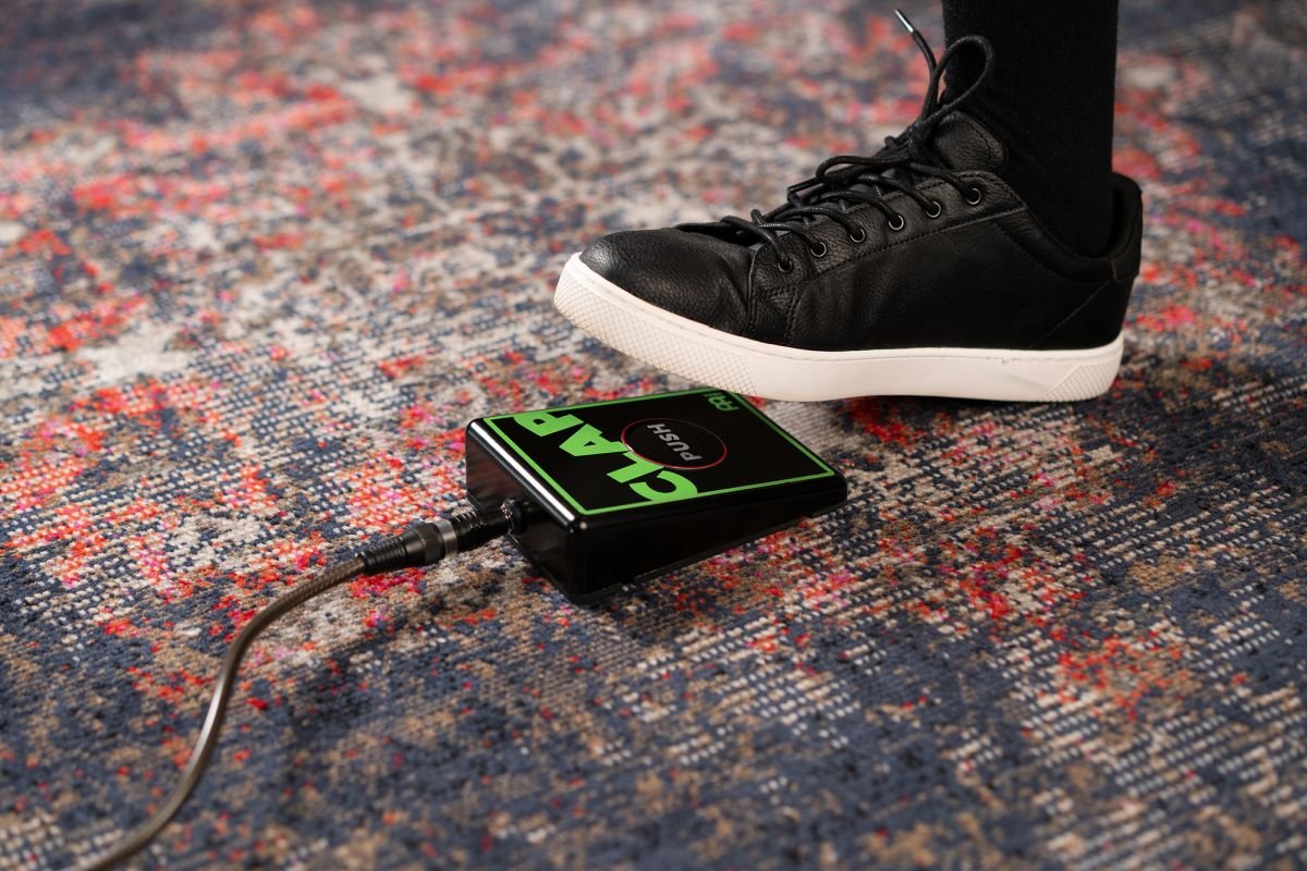 'Clap effects pedal. The Meinl Digital Percussion Stomp Box is an electronic pedal that is played to create accompanying rhythms. Each pedal features a pre-programmed percussion sound effect that can be combined with any style, and the large, highly responsive PUSH button for smooth sound.