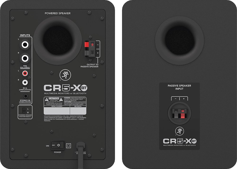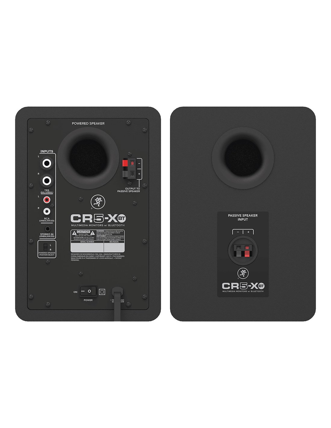 The CR5-X BT are Mackie's nearfield amplified active studio monitors. The CR5-X have a 5" polypropylene woofer and a 3/4" silk tweeter, powered by an amplifier common to both 80W speakers. The frequency response is 69Hz-20kHz. The system is equipped with Bluetooth to listen to music remotely. The product is sold in pairs and includes the ProTools First software with the Musician Bundle package, which includes 23 plugins