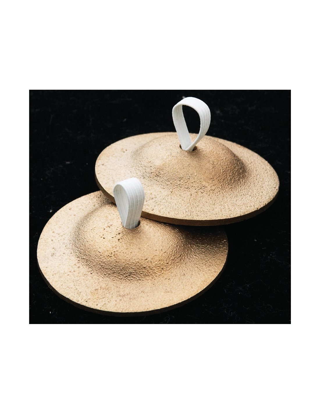 The Zildjian P0773 Finger Cymbals Thin - Pair finger cymbals are a pair of thin cast bronze alloy finger cymbals that emit a sharp and penetrating sound that is projected to be heard in large orchestras.