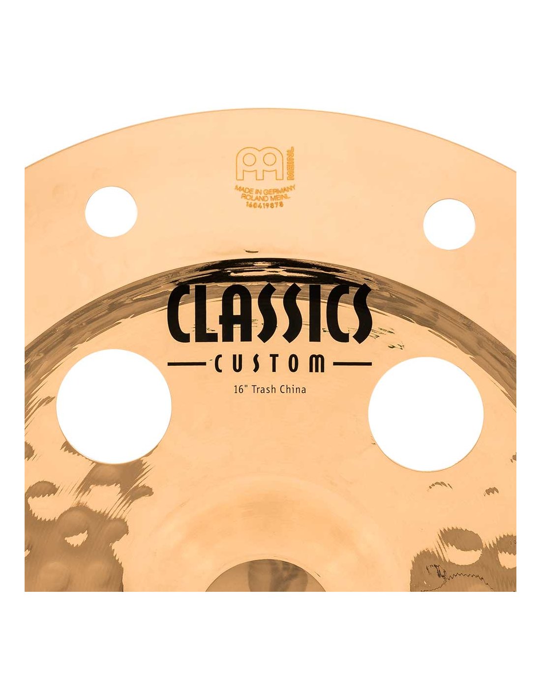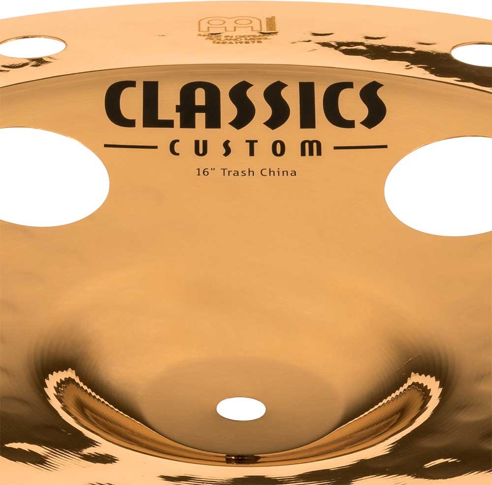 'Trash China 16"” Classics Custom Series. The Classics Custom series cymbals are mechanically produced in Germany with a B10 alloy. The process involves various techniques, both pressing and computerized beating. In addition to this they receive a glossy lacquer that gives them a spectacular glossy finish.