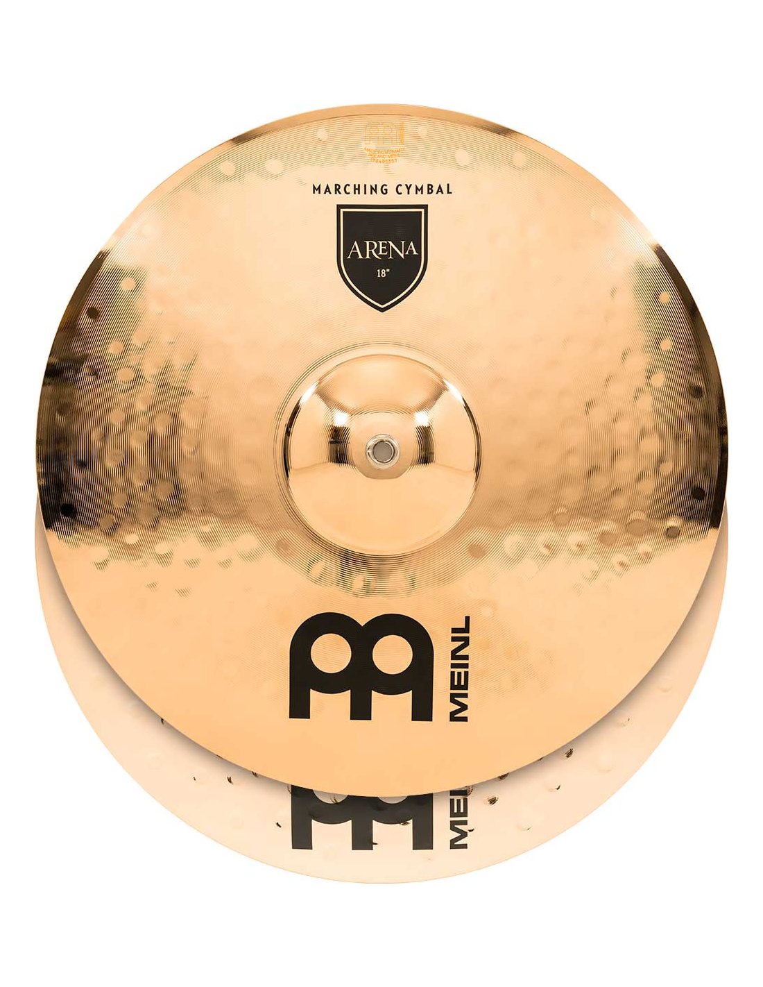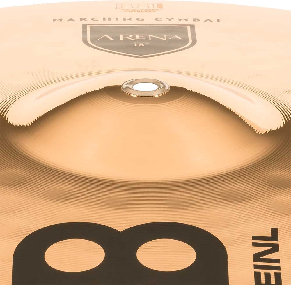 'Arena MA-AR-18 Series Professional Crash Cymbals. The Arena series marching cymbals are mechanically produced in Germany with a B10 alloy. They are modeled, then tuned and calibrated together.