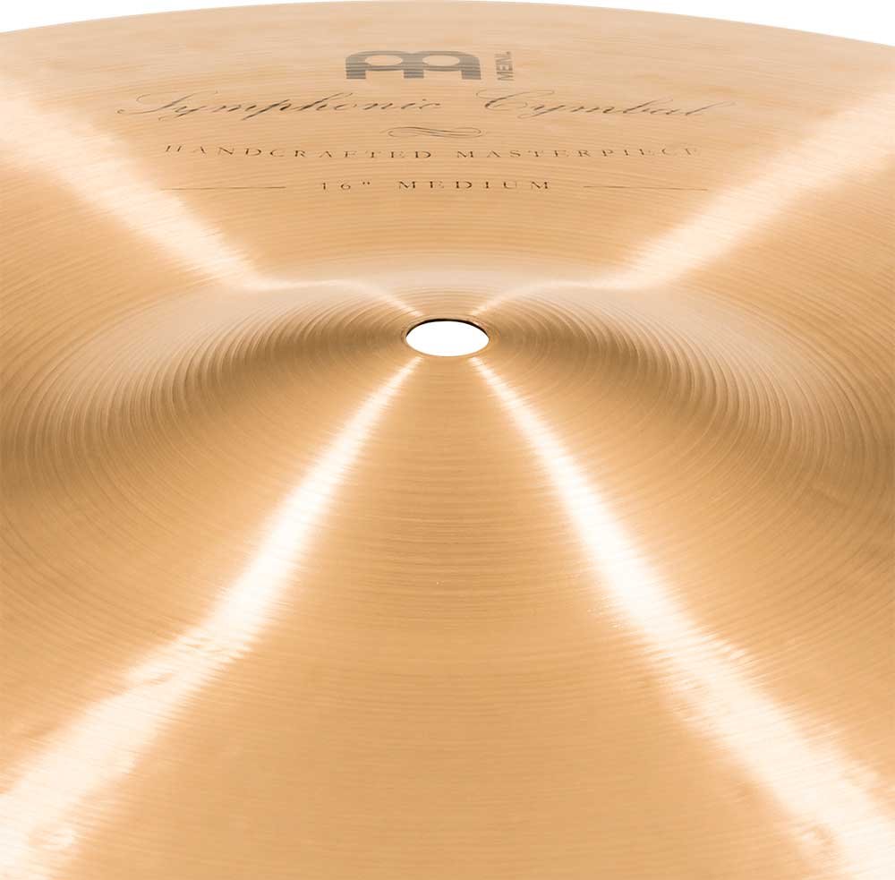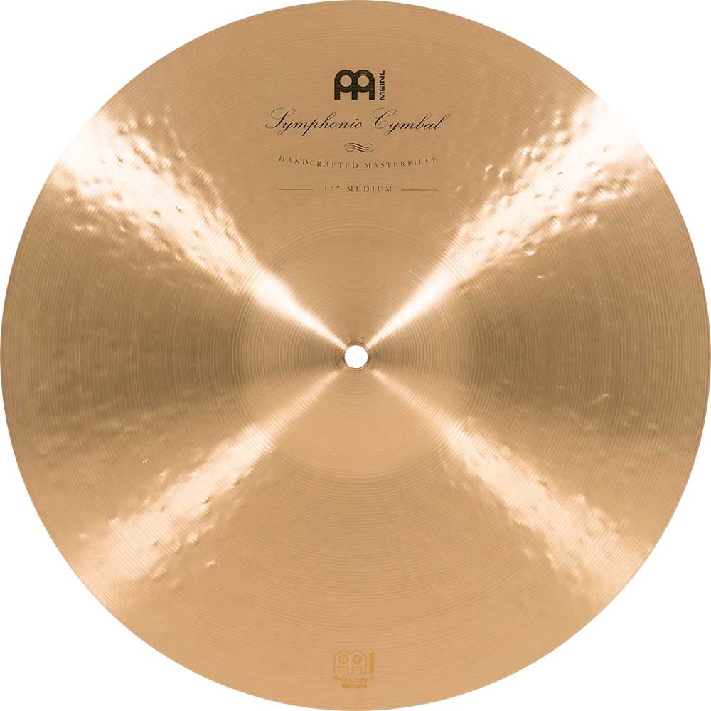 'Symponic 16" Medium. Symphonic series. The Symphonic series plates are handcrafted in our factory in Turkey by the hands of specialists and respecting tradition throughout the process. All plates are made with B20 bronze alloy discs. Various techniques are involved in the process, both hammering and turning. The Dark Unturned finish gives each cymbal a defined sound with little sustain. Really nice in the mix.