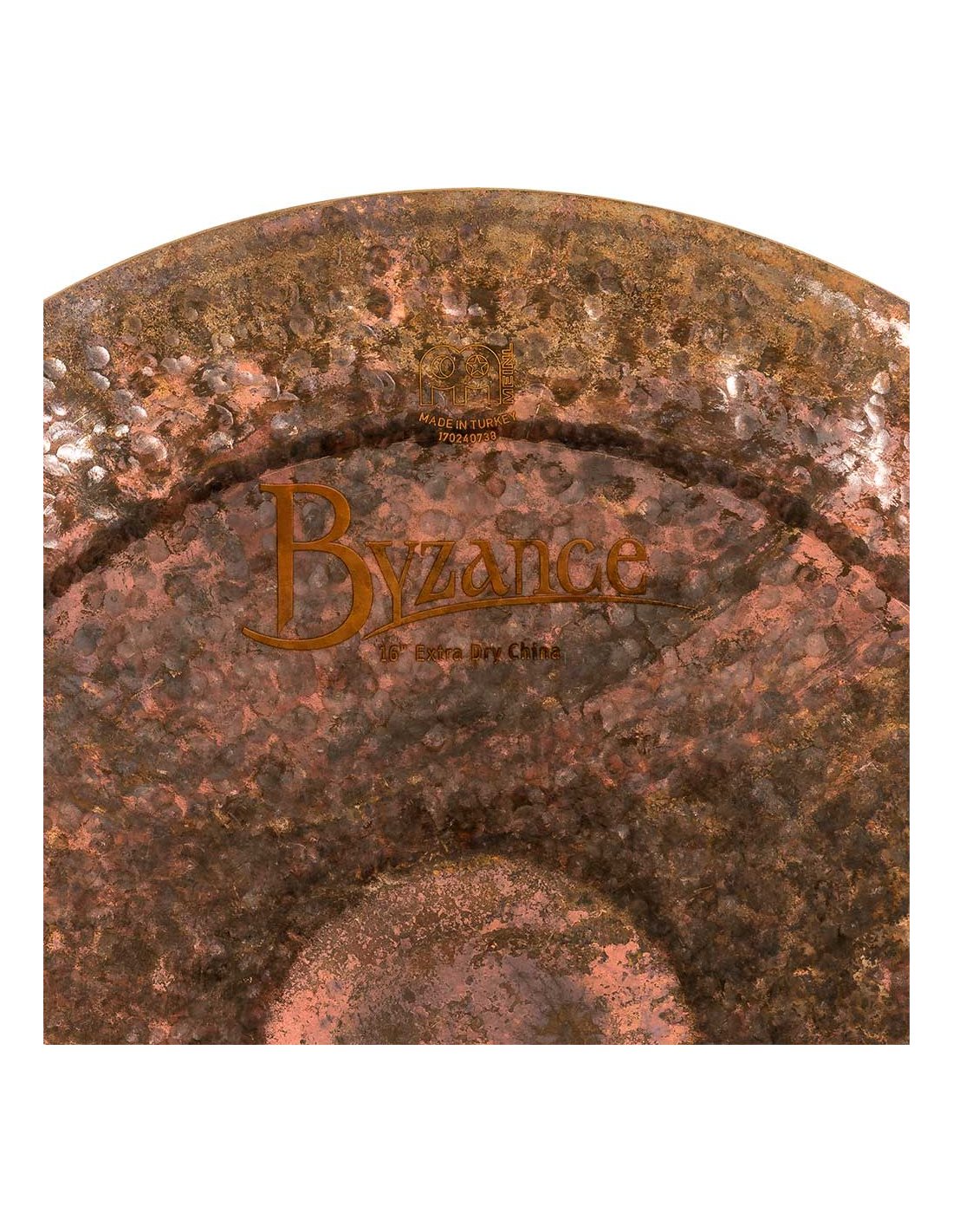 'China 16', Byzance Extra Dry Series. The Byzance Extra Dry series plates are handcrafted in our factory in Turkey by specialists and respecting tradition throughout the process. All plates are made of B20 bronze alloy discs. Several techniques are involved in the process, both hammering and turning. The unlathed top finish and the larger diameter hammered finish together with the fully lathed bottom of the plate make the series unique. With an explosive sound, a bit trashy and with little sustain. These plates have created a completely unique new sound universe.