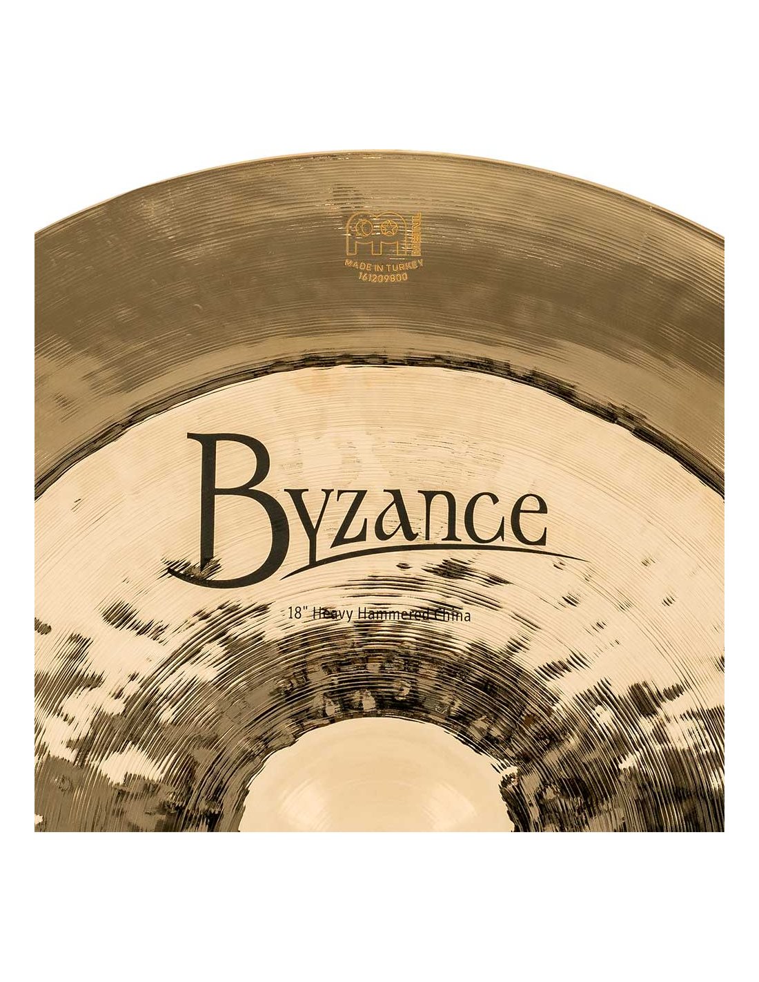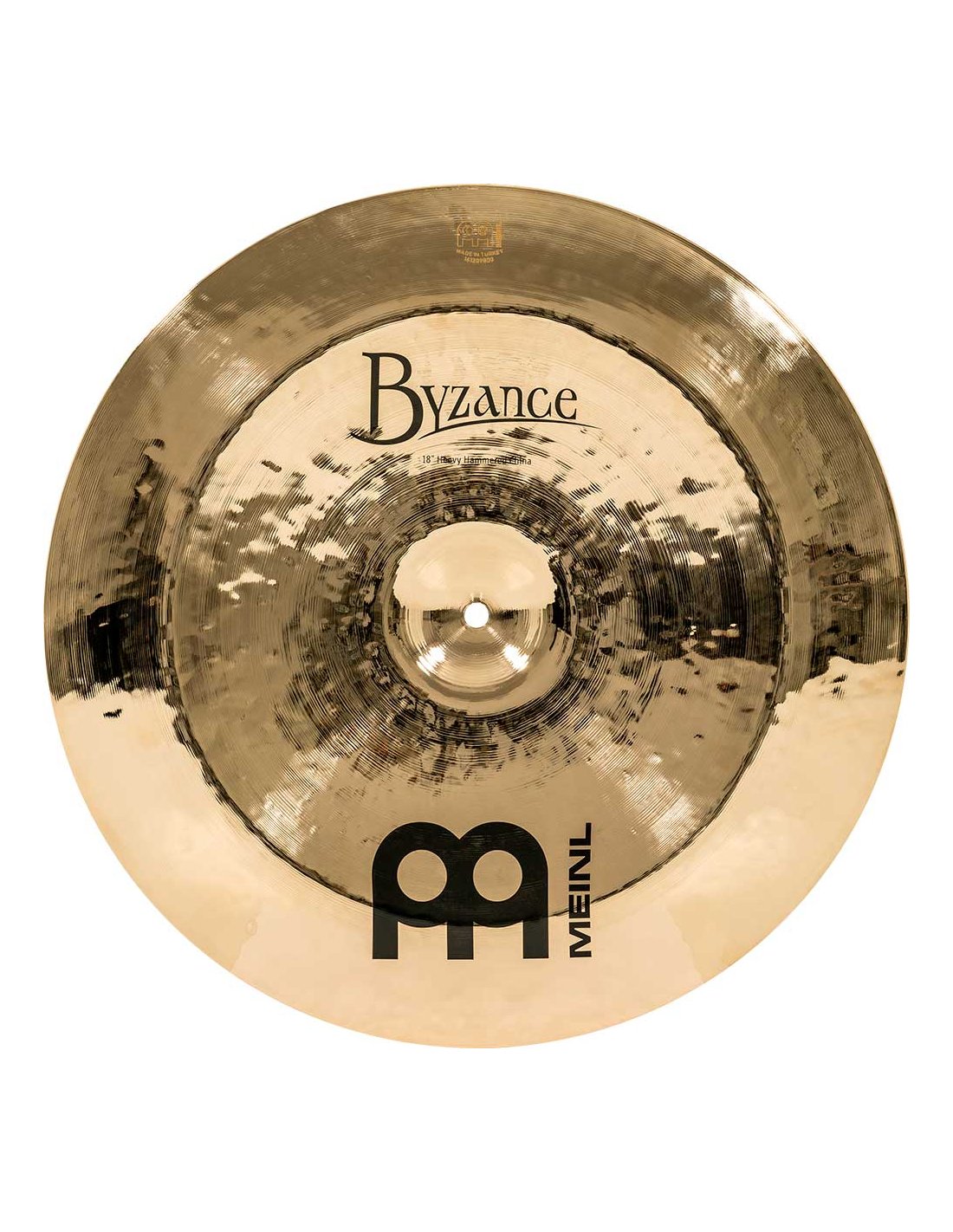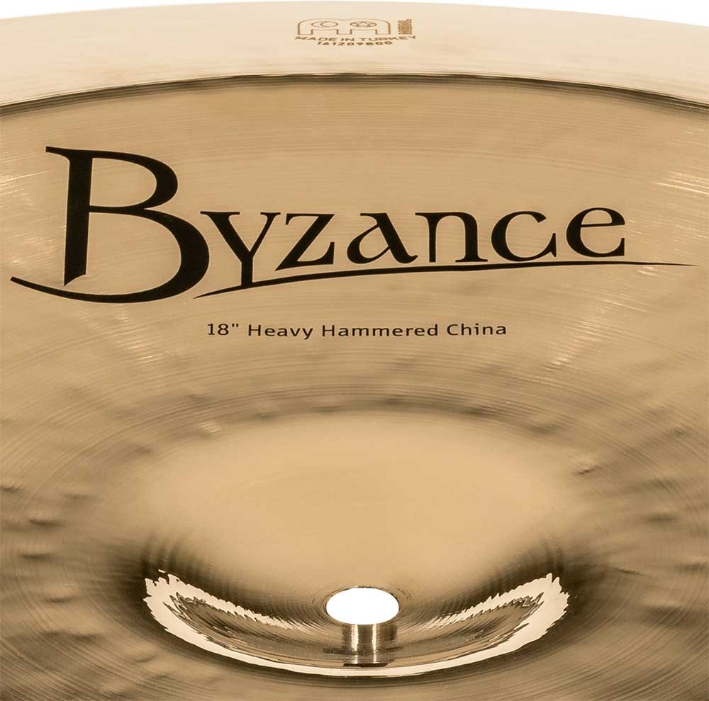 'China 18" Heavy Hammered, Byzance Brilliant Series. The Byzance Brilliant series plates are handcrafted in our factory in Turkey by specialists and respecting tradition throughout the process. All plates are made of B20 bronze alloy discs. Various techniques are involved in the process, both hammering and turning. In addition to this, they receive a glossy lacquer that gives them a more explosive sound and a spectacular glossy finish.