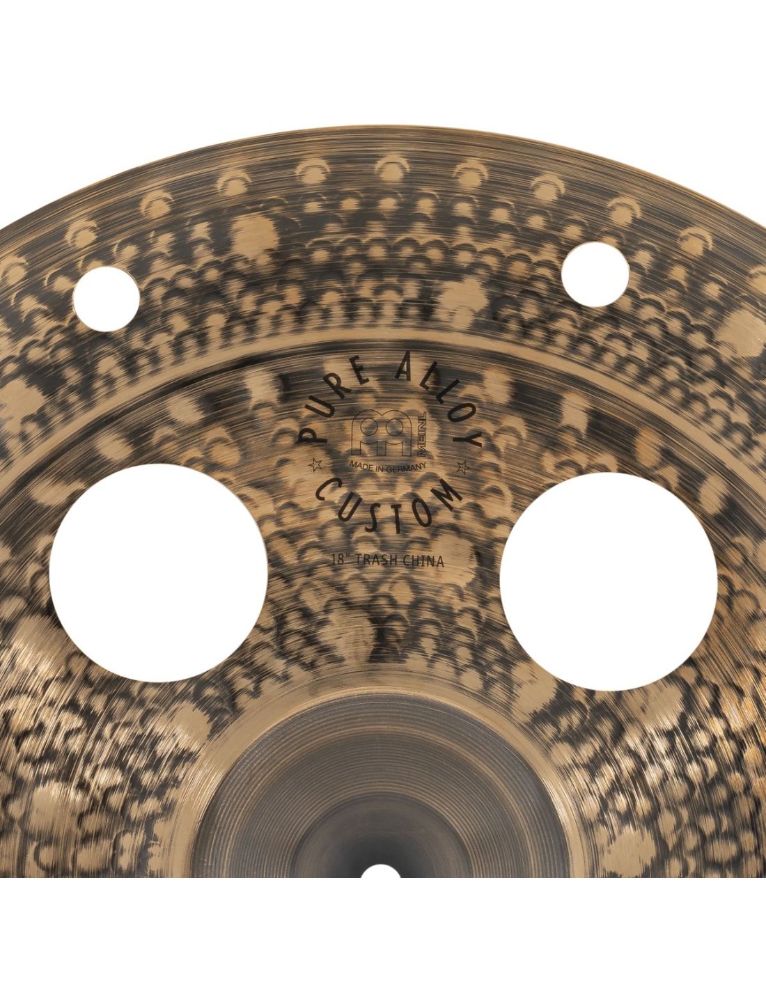 This Trash China has holes all over the body and expresses itself quickly, precisely and without much effort. Working at all levels, from soft accents to violent hits, the holes give this cymbal an authentic, refined voice with a short sustain. Pure Alloy Custom is a unique series that offers soft tones, a great feel under the drum stick and a distinctive look on any drum kit. It produces a slightly softer attack with a warmer body and rapid decay, while maintaining the brilliant sound and sustain that the Pure Alloy series is known for. Made in Germany from pure bronze hammered into shape. To make these plates stand out visually, we made a finish on the upper part called fume bronze and polished the lower part to obtain a brilliant finish.