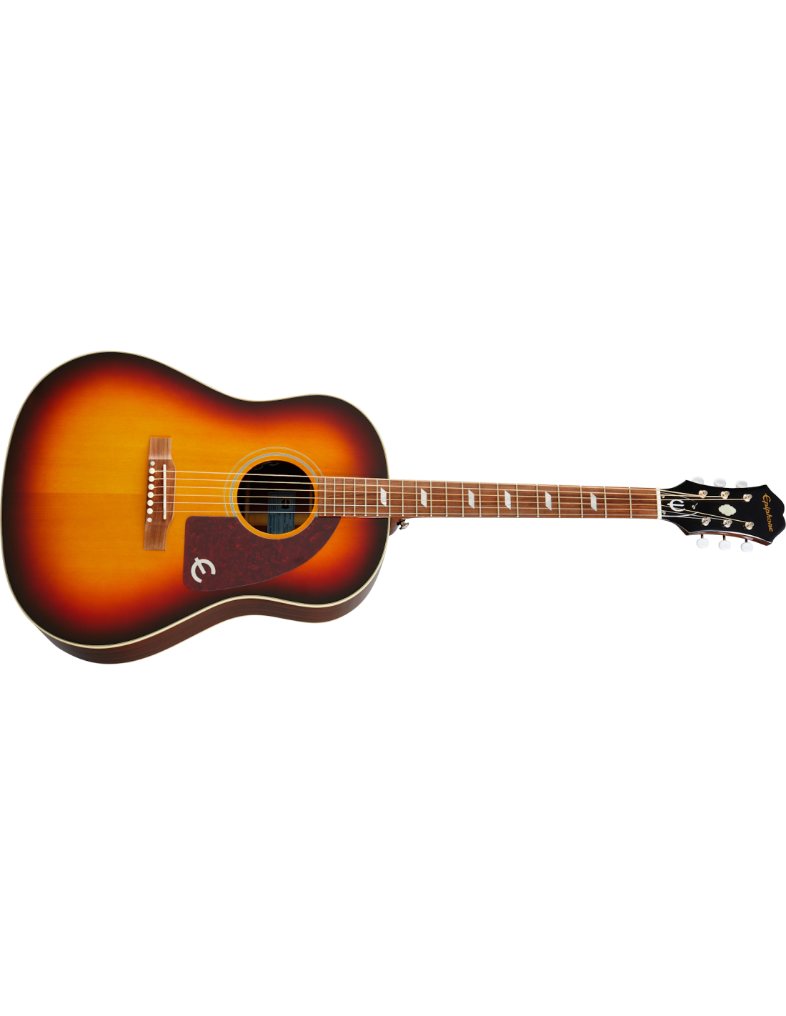The EPIPHONE MASTERBILT TEXAN is a 6-string electrified acoustic guitar with the following technical characteristics: solid Sitka spruce top, solid mahogany back and sides, vintage sunburst finish, mahogany neck with traditional 1960s SlimTaper™ “C” profile, with Indian laurel fingerboard, Graph Tech® NuBone (graphite) nut, Fishman® Sonitone electronics, ebony bridge, mother-of-pearl inlays.