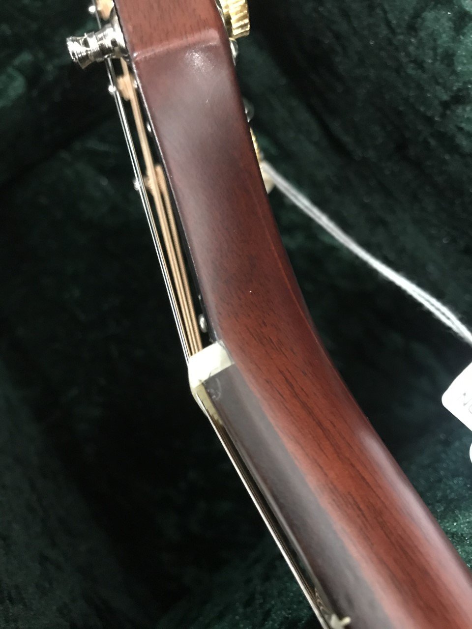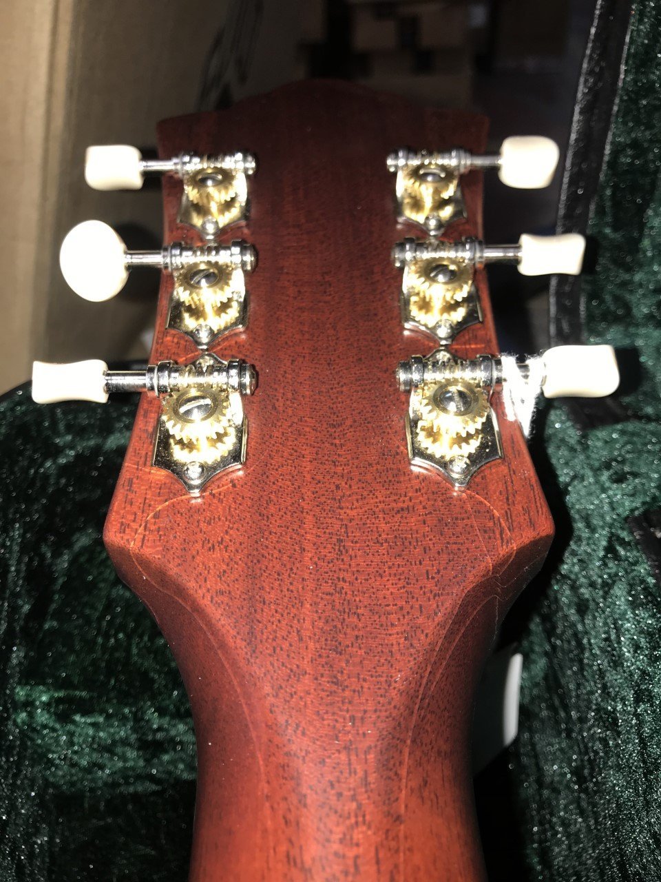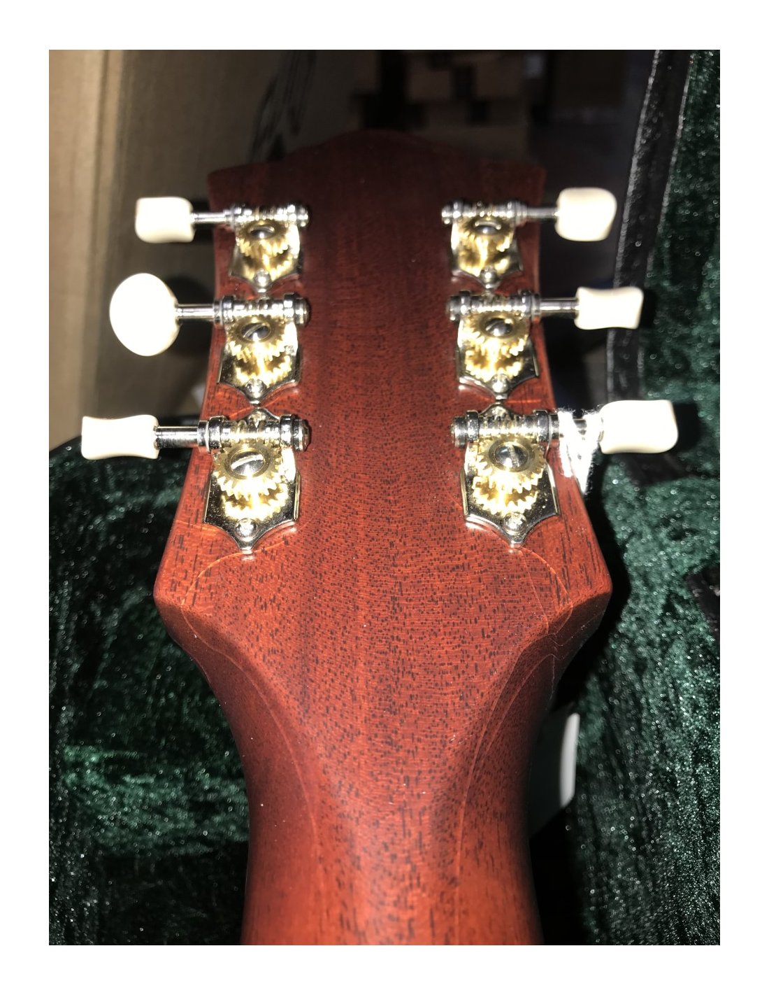 Discover the incredible cleanliness, balance and volume of our jumbo-shaped F-40 made in the USA made in Southern California. Solid Sitka spruce top, solid African mahogany back and sides, mahogany handle with C profile, the scale is 651 mm. This jumbo is perfect for musicians looking for great projection and accentuated mid-range, its progenitor, the F-48 Navarre, was produced only from 1972 to 1976 and the original versions are highly sought after. The characteristics of the time include a tortoiseshell celluloid pickguard, white ABS binding, Guild logo on the mother-of-pearl headstock. Precious materials, such as Indian rosewood for bridge and keyboard, open mechanics with a 20:1 ratio and white acrylic palette, nut (43mm) and bone cross, complete this wonderful acoustics. The polyurethane satin finish gives this guitar a familiar look and allows the wood to vibrate freely. Each F-40 comes with a Guild hardwood case with a Humicase® humidification system.de pinturaArticolo reemballado