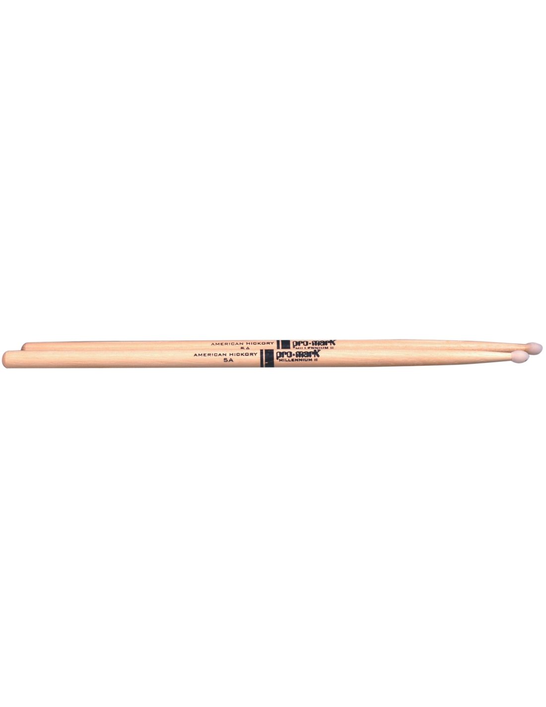 PRO MARK FORWARD 5A NYLON TIP TX5AN is a pair of American walnut (Hickory) 5A drumsticks with an oval nylon tip for a more powerful and brilliant sound.