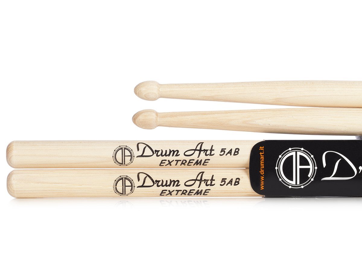 DRUM ART 5AB EXTREME. Pair of 5th American walnut chopsticks with a light body, agile and powerful thanks to the longer length, extremely versatile and balanced with an acorn tip for greater presence on the plates