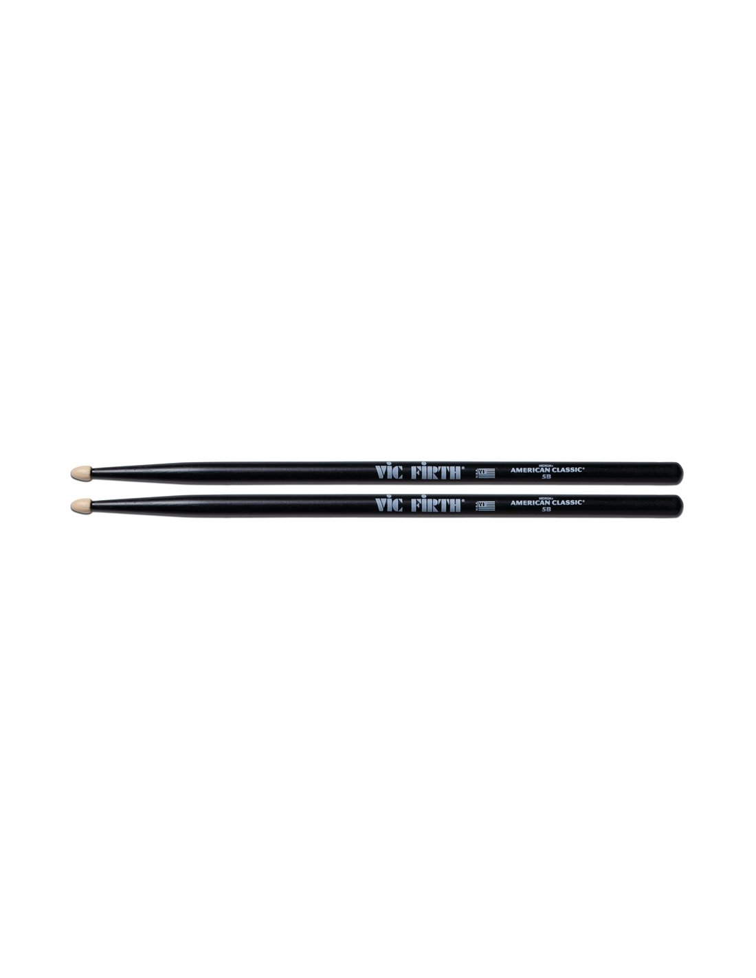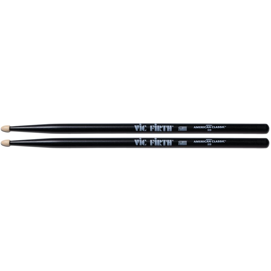 VIC FIRTH 5B BLACK. The Vic Firth 5b are walnut chopsticks with a drip-shaped wooden tip. They are ideal for genres with high dynamics such as Rock, Heavy Metal. They have taper and medium length