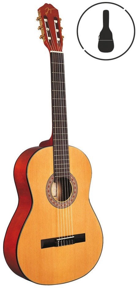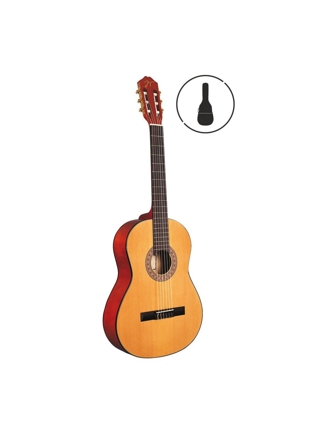 3/4 size classical guitar, for children 9-12 years old. Spruce case. Linden band and case. Catalpa keyboard. 'Rosewood' compound handle and bridge. Case included. Perfect for starting to play the first chords.